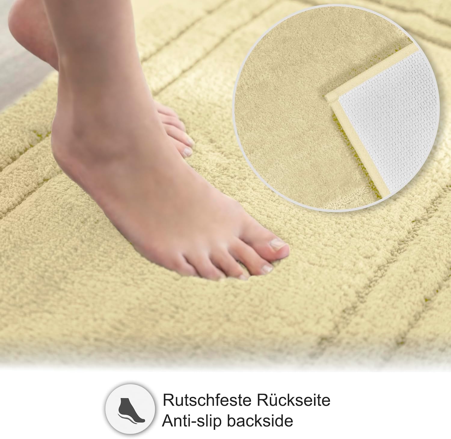 • Неплъзгаща се безопасност на всички подови настилки. Нашият килим за баня предлага максимално сцепление върху плочки, винил и естествен камък благодарение на неплъзгащата се долна страна - идеален като безопасна постелка за баня за душ и вана.
