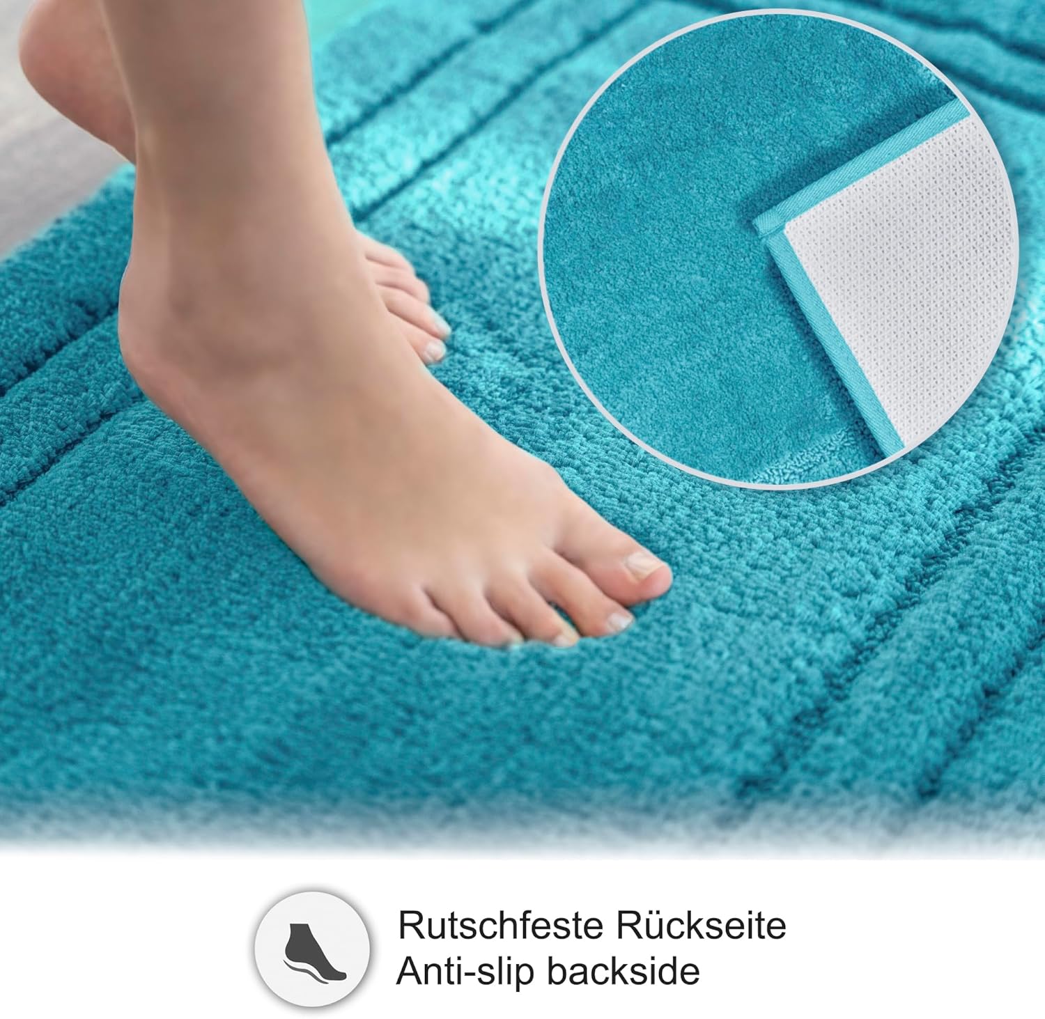 Неплъзгаща се постелка за баня, Може да се комбинира като комплект постелки за баня, Килим за тоалетна, Килим за баня, Переща се постелка за душ, Комплект за баня, Петрол тюркоаз, 40 x 60 см