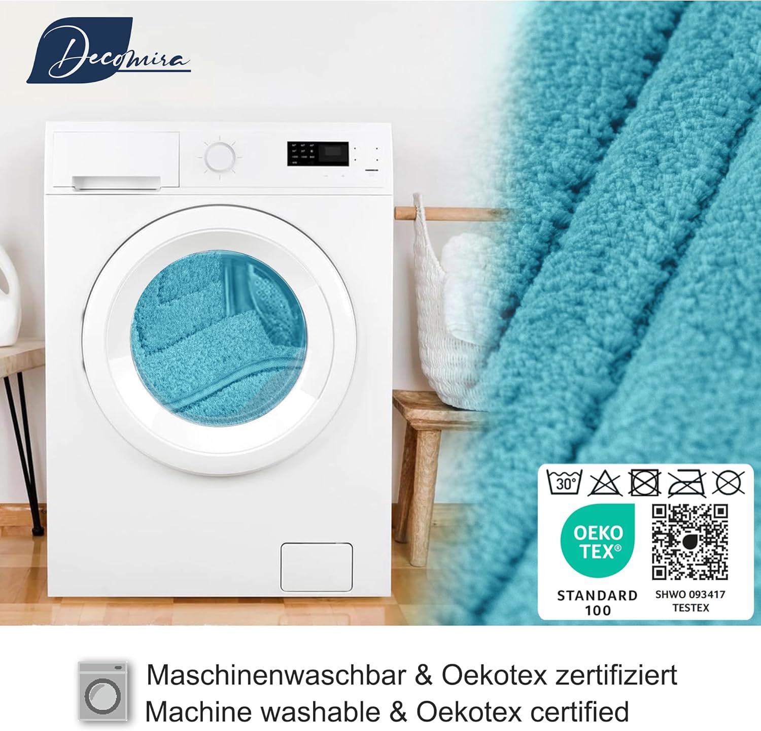 • Лесна за пране и поддръжка: постелката за баня, която може да се пере, може да се пере в пералня на 30°C и запазва размерите си стабилни - идеална за хигиенично чиста среда в банята.