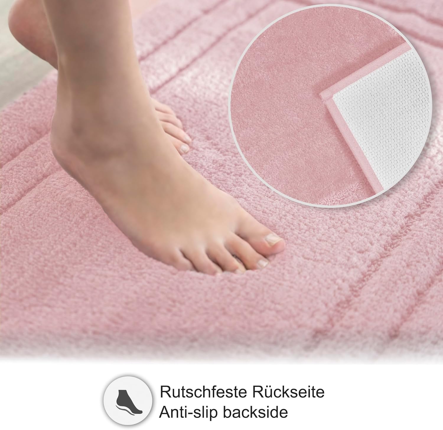 • Неплъзгаща се безопасност на всички подови настилки. Нашият килим за баня предлага максимално сцепление върху плочки, винил и естествен камък благодарение на неплъзгащата се долна страна - идеален като безопасна постелка за баня за душ и вана.