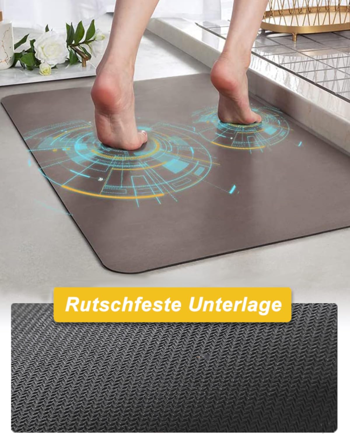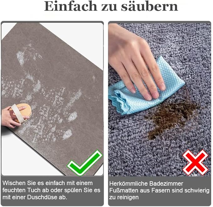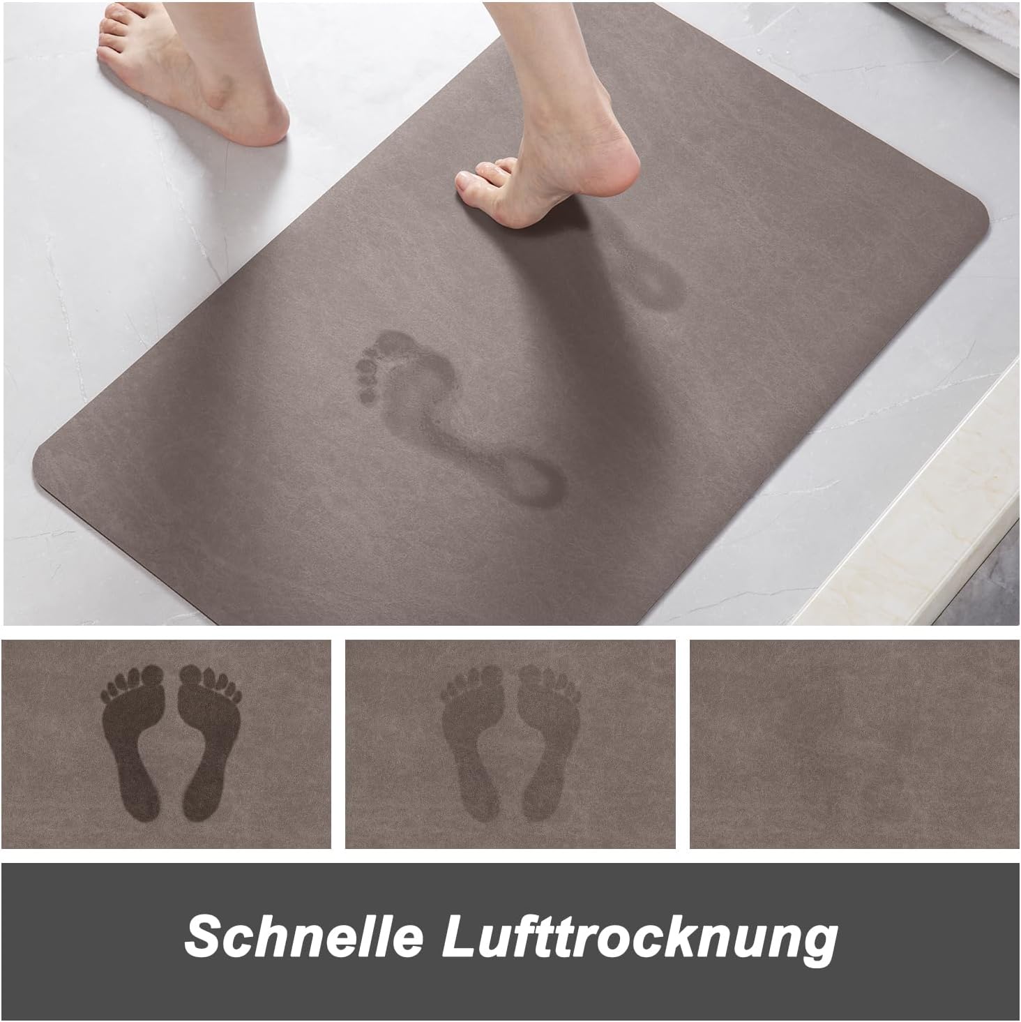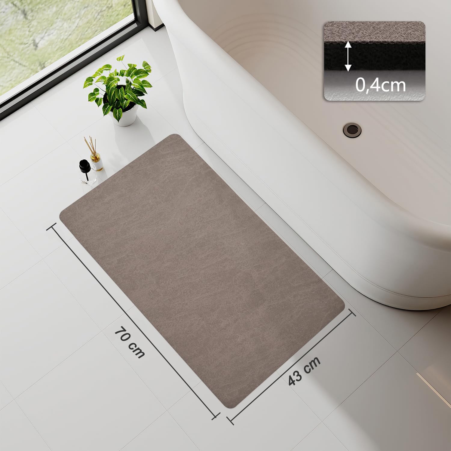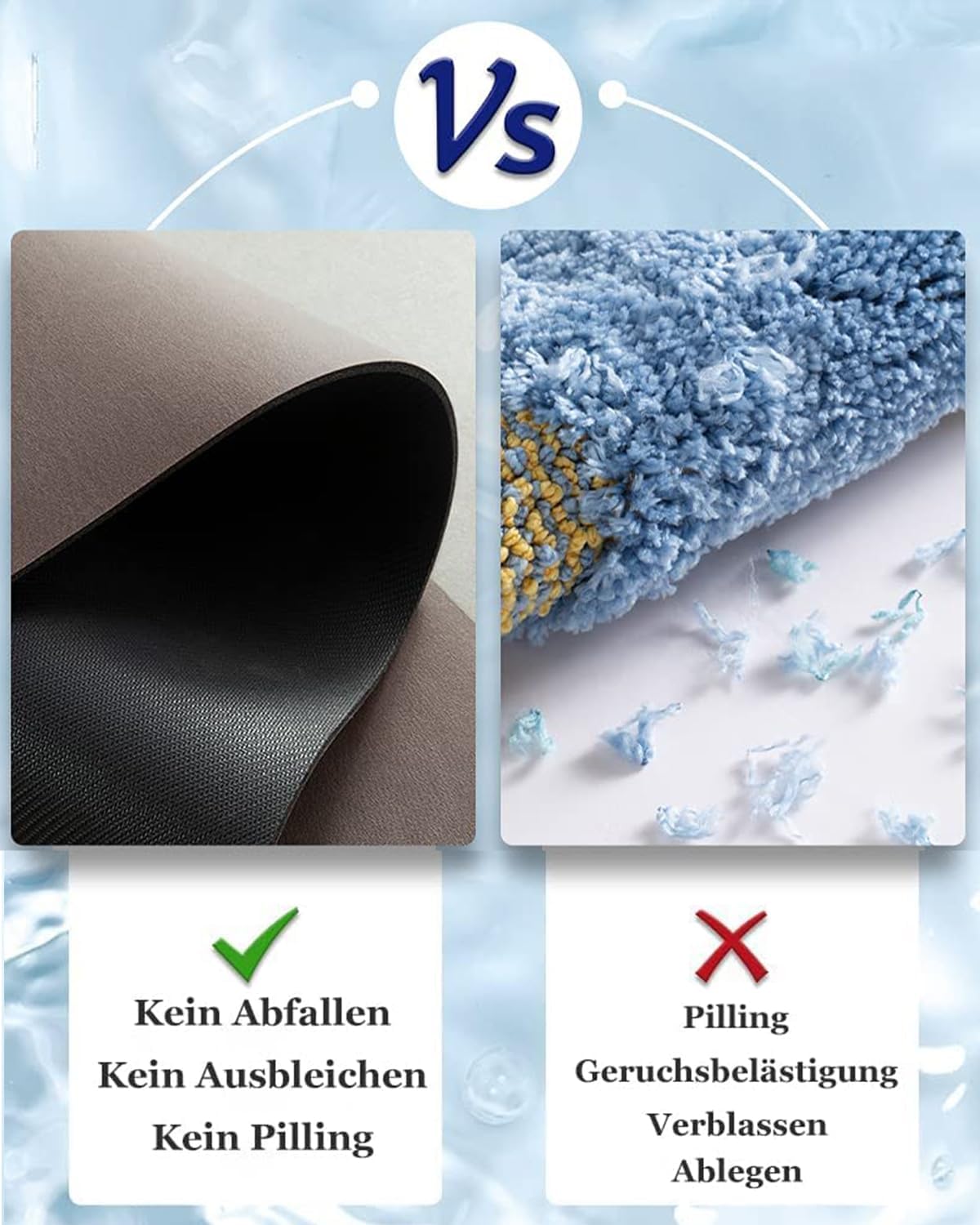 Really absorbent and quick drying – This highly absorbent bath mat has a middle layer of absorbent sponge and diatomaceous earth, which is extremely absorbent. Non-slip mats – These bath mats with rubber backing are designed with a surface made of faux suede, the back is made of rubber. These can prevent slipping and shifting and increase safety and stability. No shedding - These bath mats for the floor are very soft and smooth, unlike traditional chenille rugs for the bathroom. They are more durable and there are no shedding, odours, fading, wearing out or hidden hair. Easy to clean - the smooth surface design helps to resist dirt and hair. Therefore, you do not need to dry or clean the washable bath mats every day. Can be used anywhere - the bath mat is only 4 mm thick, and it will not get stuck in the door opening while it meets foot comfort and water absorption.