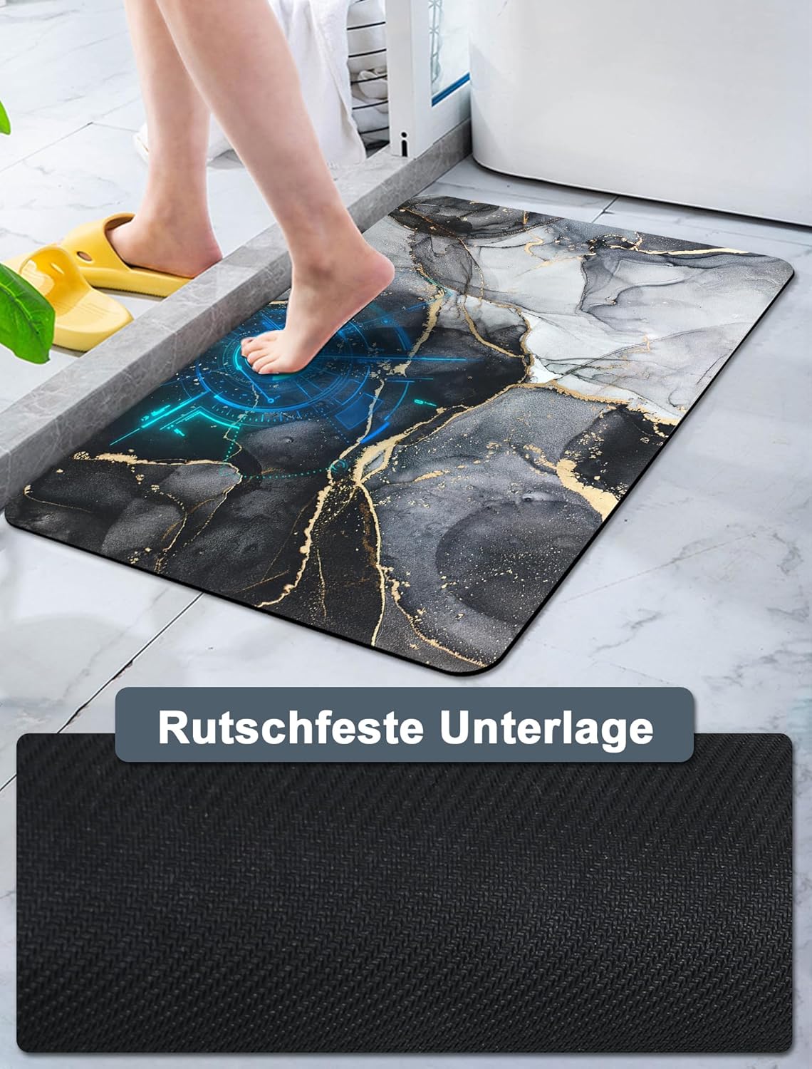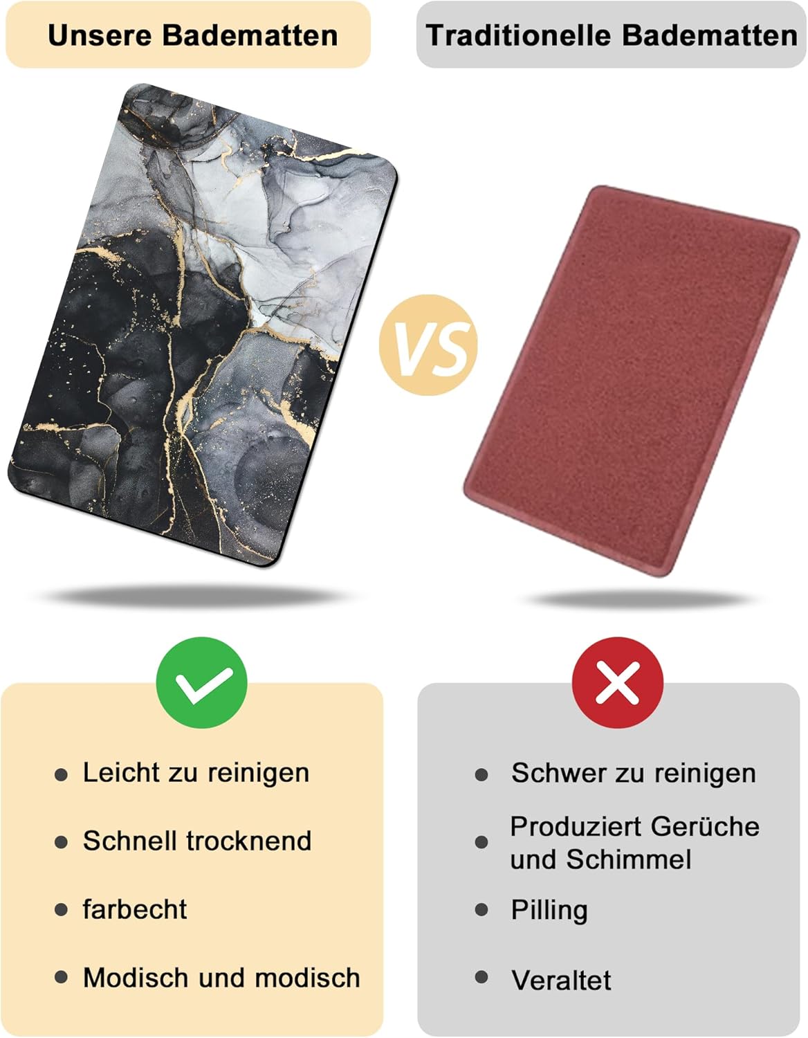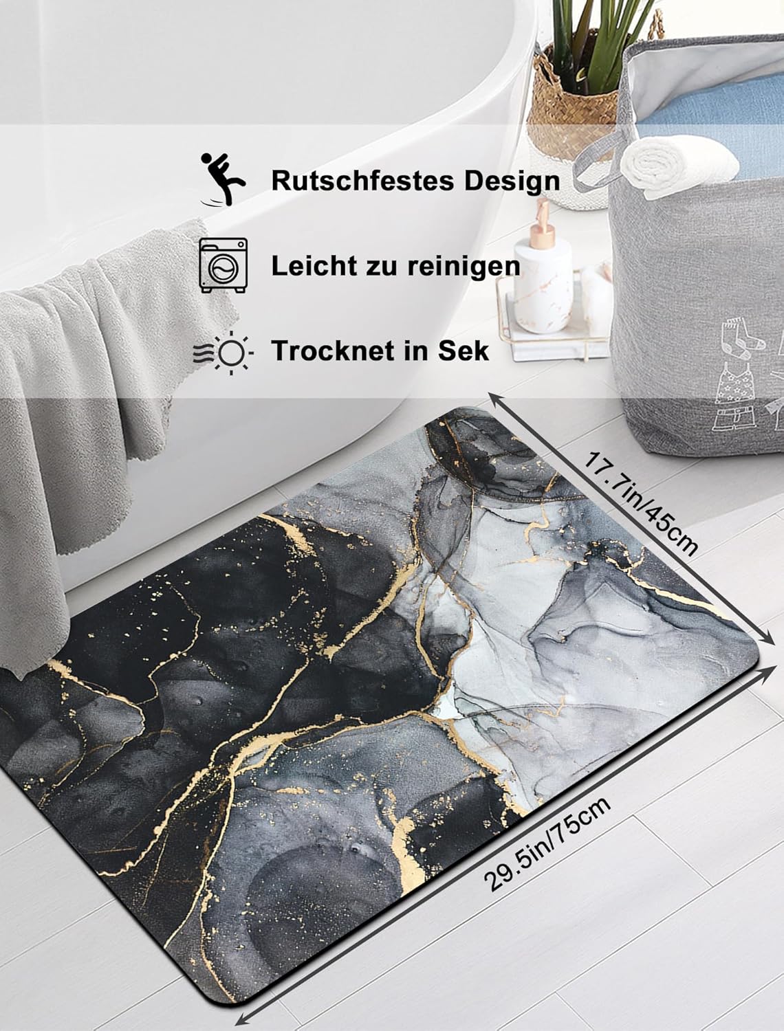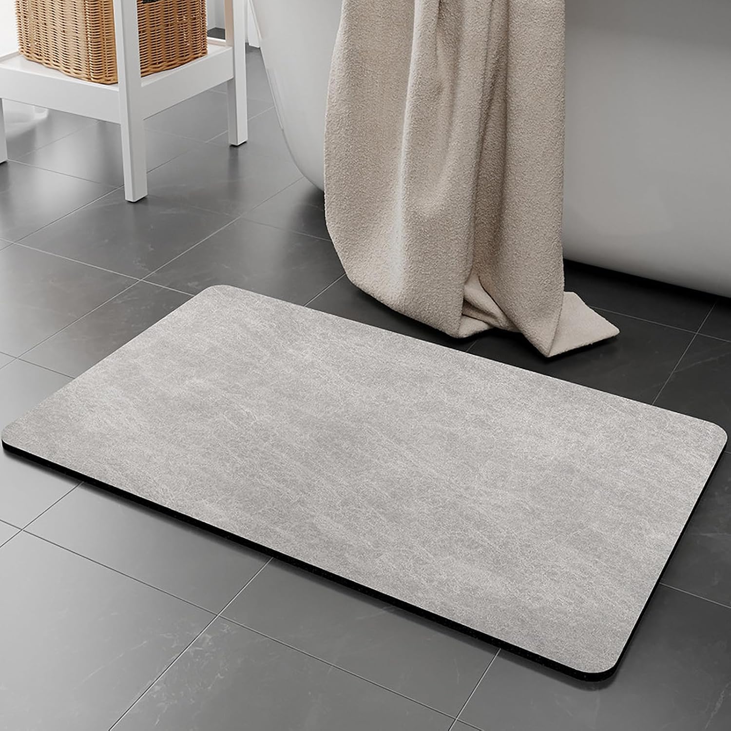 Really absorbent and quick drying – This highly absorbent bath mat has a middle layer of absorbent sponge and diatomaceous earth, which is extremely absorbent. Non-slip mats – These bath mats with rubber backing are designed with a surface made of faux suede, the back is made of rubber. These can prevent slipping and shifting and increase safety and stability. No shedding - These bath mats for the floor are very soft and smooth, unlike traditional chenille rugs for the bathroom. They are more durable and there are no shedding, odours, fading, wearing out or hidden hair. Easy to clean - the smooth surface design helps to resist dirt and hair. Therefore, you do not need to dry or clean the washable bath mats every day. Can be used anywhere - the bath mat is only 4 mm thick, and it will not get stuck in the door opening while it meets foot comfort and water absorption.