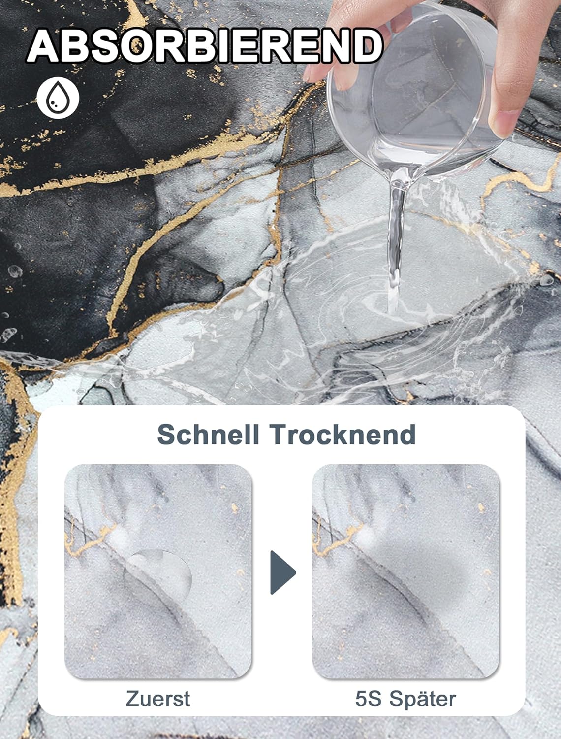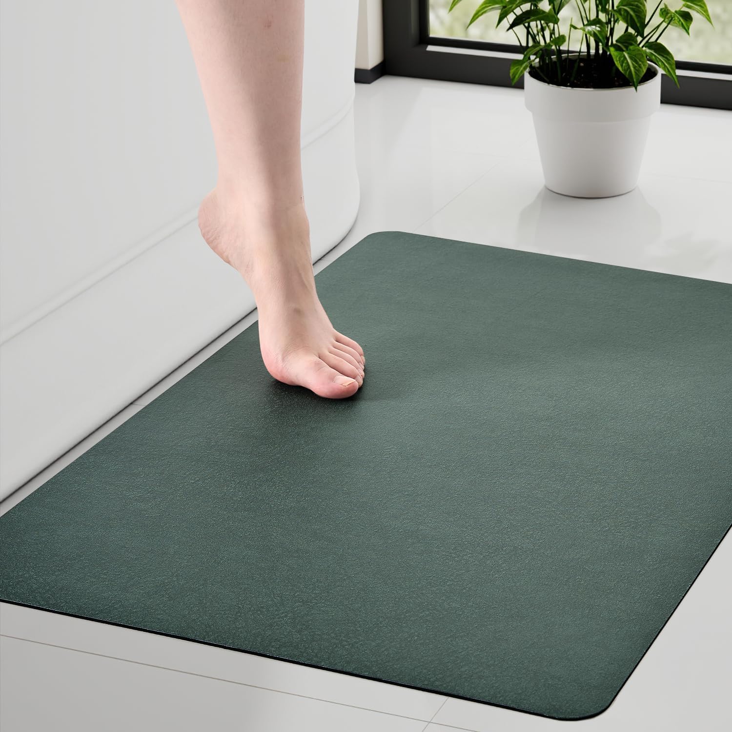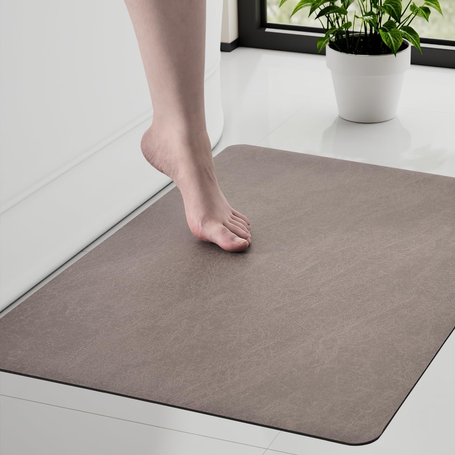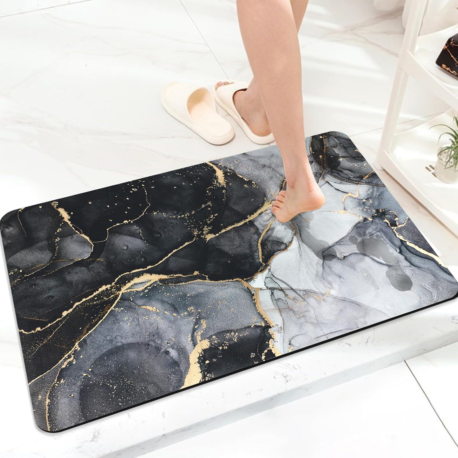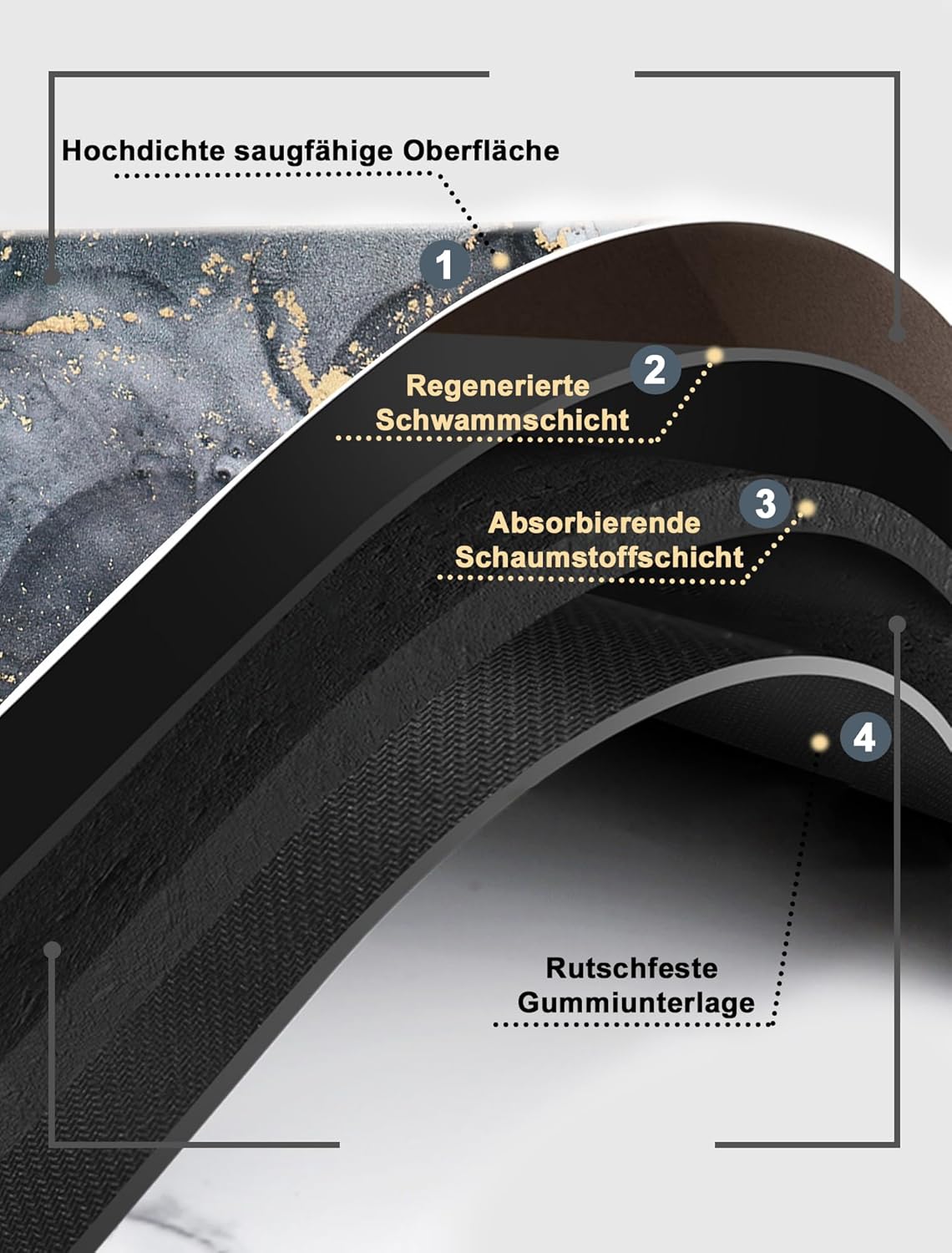 Really absorbent and quick drying – This highly absorbent bath mat has a middle layer of absorbent sponge and diatomaceous earth, which is extremely absorbent. Non-slip mats – These bath mats with rubber backing are designed with a surface made of faux suede, the back is made of rubber. These can prevent slipping and shifting and increase safety and stability. No shedding - These bath mats for the floor are very soft and smooth, unlike traditional chenille rugs for the bathroom. They are more durable and there are no shedding, odours, fading, wearing out or hidden hair. Easy to clean - the smooth surface design helps to resist dirt and hair. Therefore, you do not need to dry or clean the washable bath mats every day. Can be used anywhere - the bath mat is only 4 mm thick, and it will not get stuck in the door opening while it meets foot comfort and water absorption.