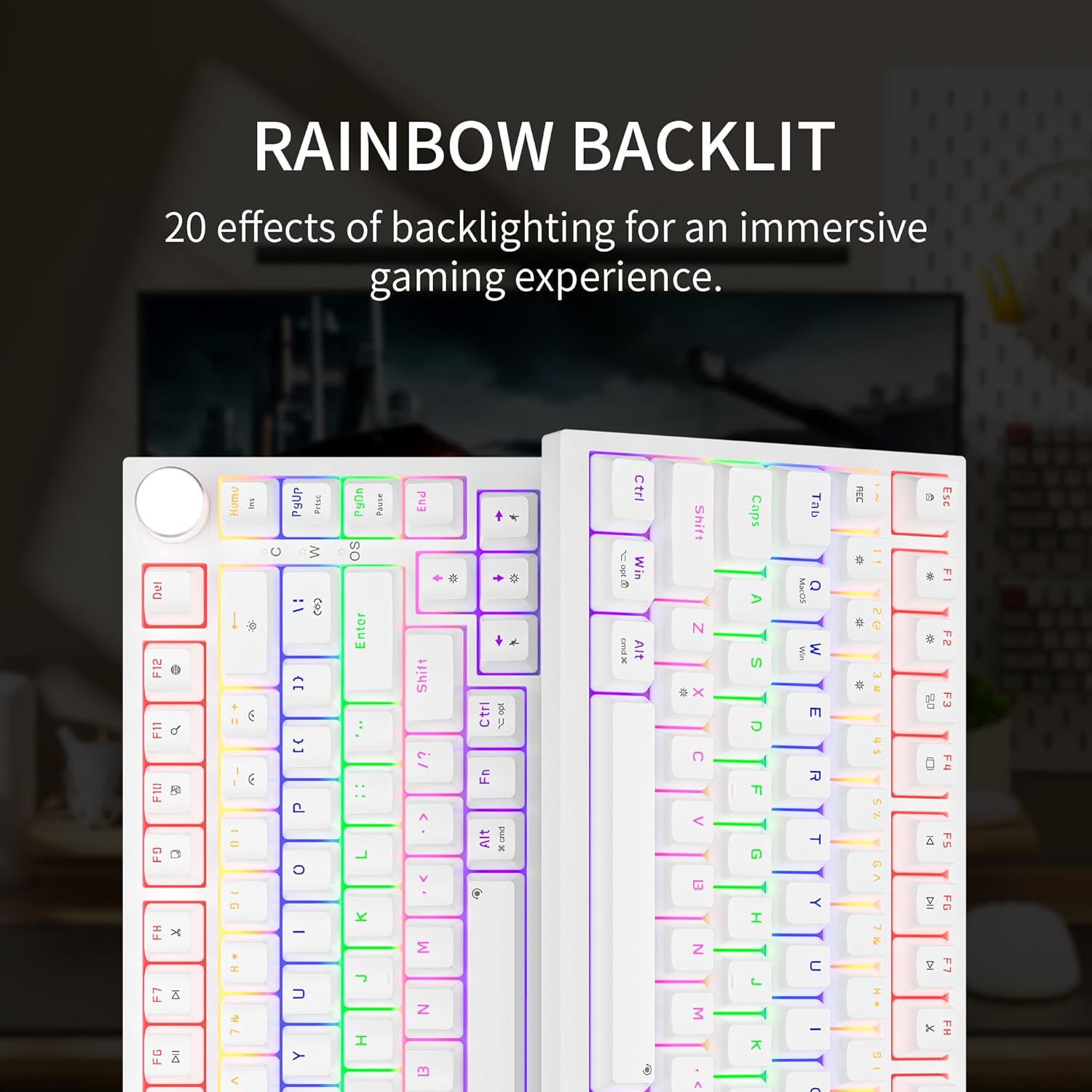 Геймърската клавиатура, която заема 75% място, спестява място в сравнение със 104-клавишните клавиатури, но запазва клавишите със стрелки и е по-практична от механична клавиатура, която заема 60%. Тя ви предлага висока ефективност и добро усещане при игра и работа, без да се чувствате обезпокоени от клавишните комбинации.