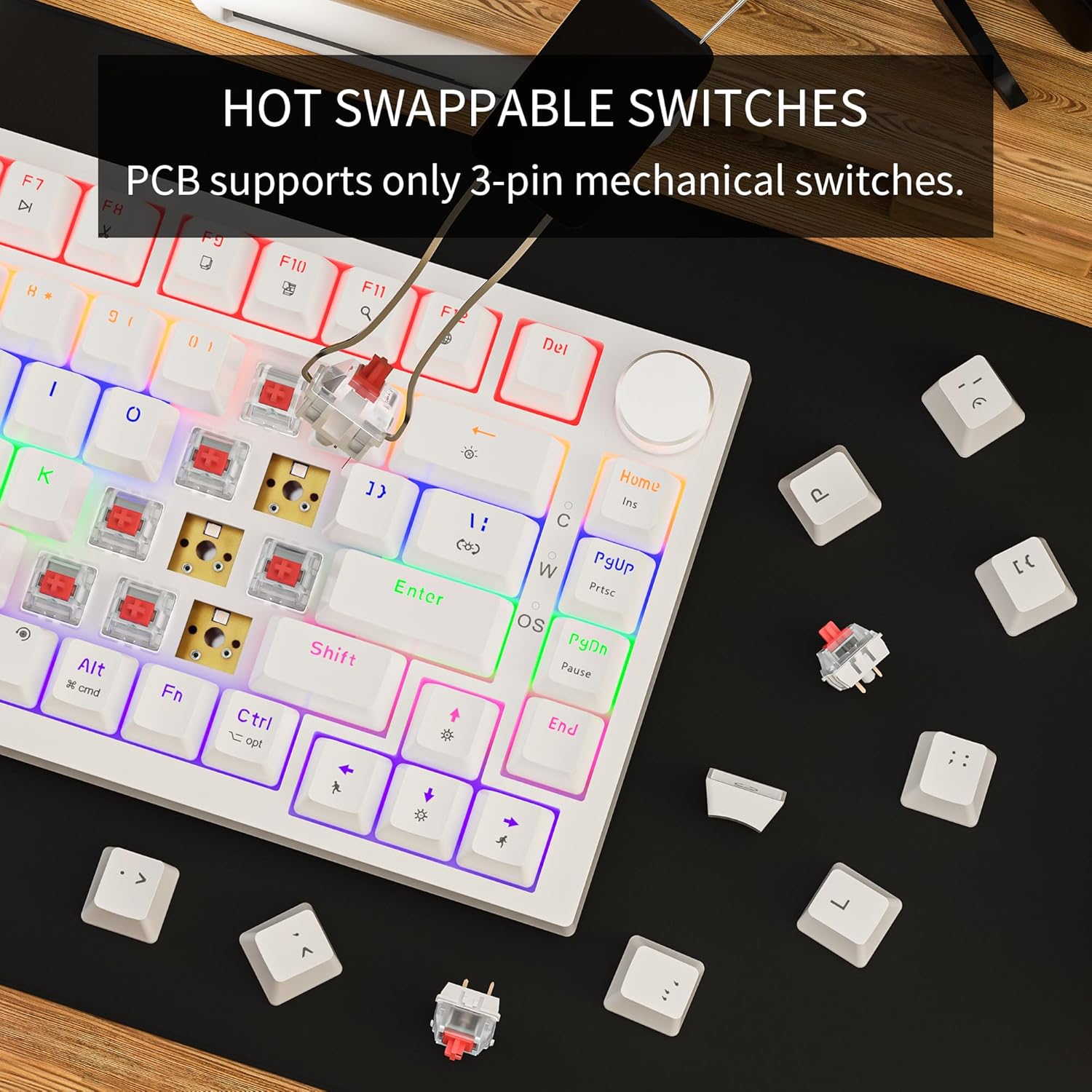 NEWMEN GM326 Механична клавиатура с кабел, Геймърска клавиатура 75% процент, TKL Hot Swap Компактна LED Осветление USB C Мини Механична клавиатура с Бутони, за PC/Win/Mac, QWERTY Подредба, Черна, Червени Суичове