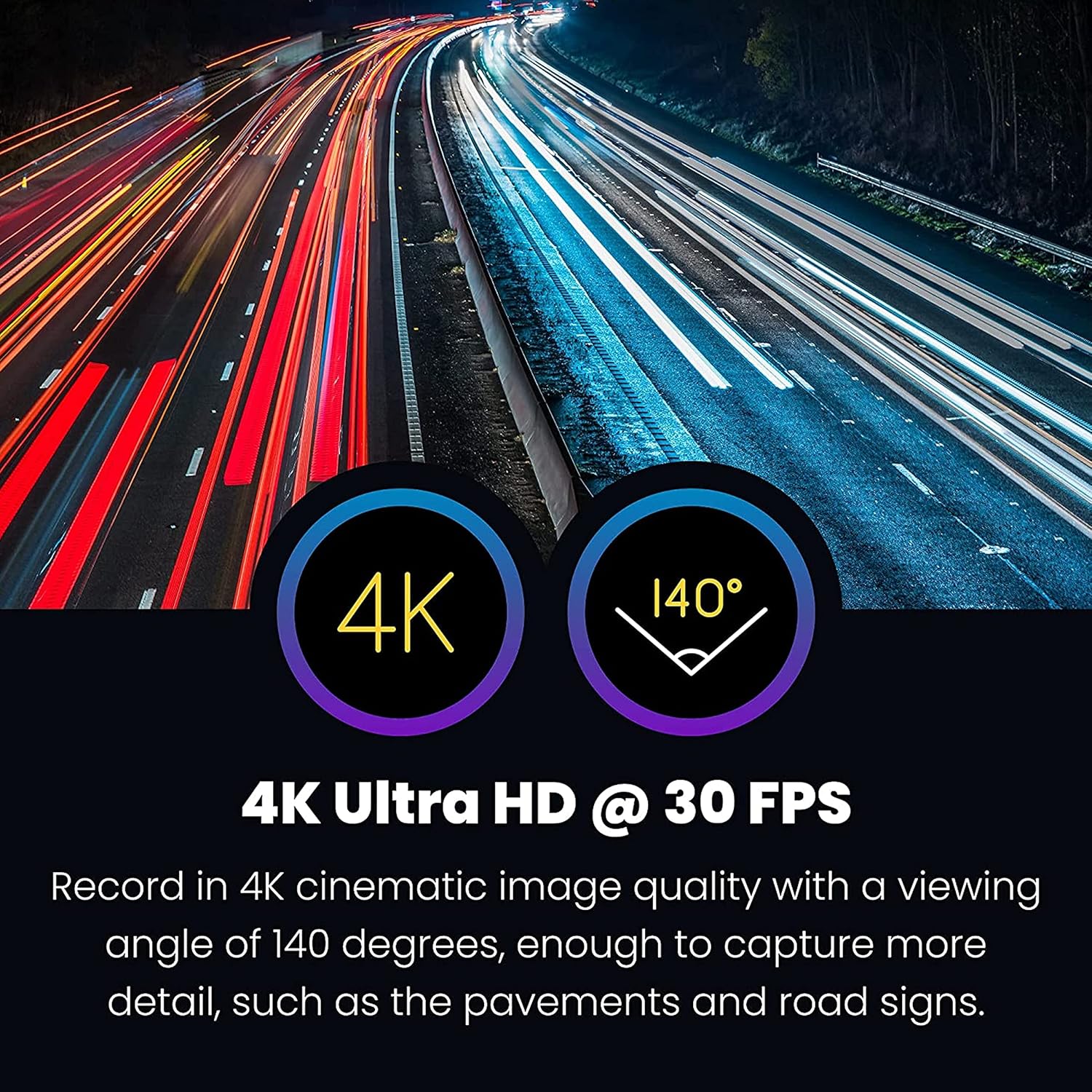 • 2160P 30FPS: Видеорегистраторът Nextbase 622GW осигурява ясни 2160p (4K) записи при 30fps с широкоъгълен обектив от 140°. Този видеорегистратор улавя всеки детайл на пътя, като същевременно гарантира стабилна работа и ясно качество на изображението.