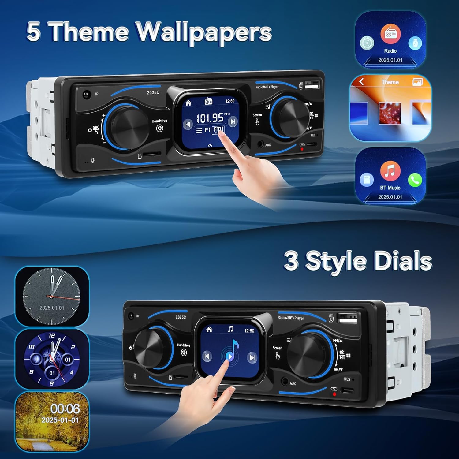 • МОДЕРЕН ДИЗАЙН С ТЪНШИТЕЛЕН ЕКРАН С ПЕРСОНАЛИЗИРУЕМ ДИСПЛЕЙ Това 1 DIN радио с тъчскрийн разполага с 2.17-инчов HD дисплей с плавно сензорно управление и ярки цветове. Персонализирайте изживяването си с 3 стила на копчетата и 5 тапета, които съответстват на естетиката на вашето табло - идеално за всяка универсална 1 DIN автомобилна стерео система.