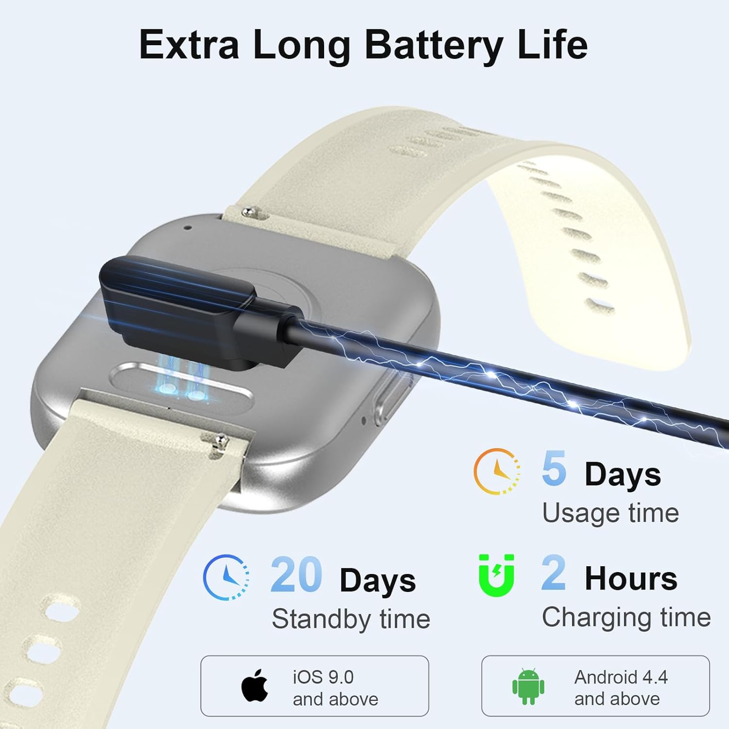 • Дълготрайна батерия и съвместимост: Мъжкият смарт часовник с Android има голяма батерия от 200 mAh, която издържа 5-7 дни с 2-часово зареждане и до 30 дни в режим на готовност. Вече не е нужно да се притеснявате за батерията, когато пътувате. Този фитнес часовник е съвместим с повечето смартфони и поддържа iOS и Android. Изтеглете и инсталирайте безплатното приложение "GloryFit", за да можете да преглеждате данни на мобилния си телефон.