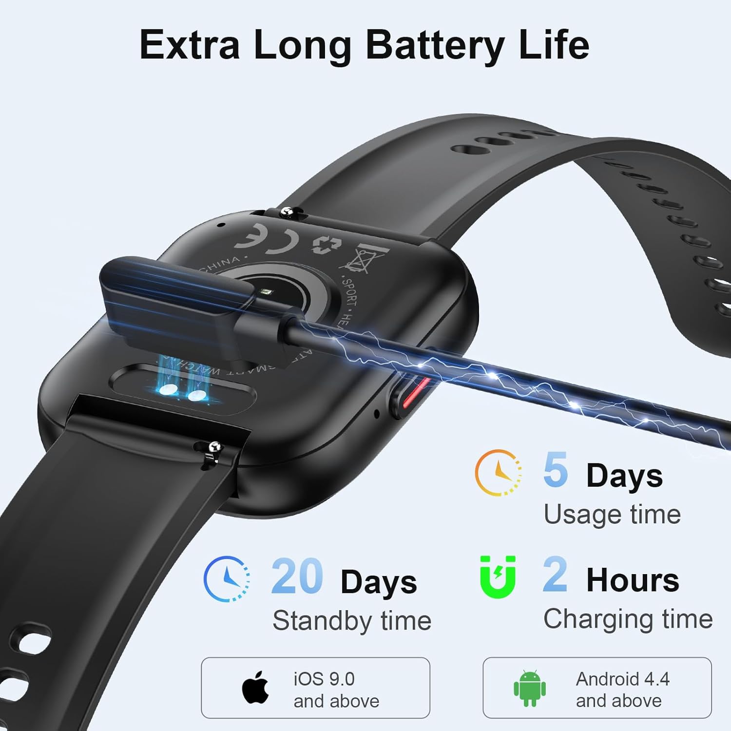 • Голям екран и индивидуален циферблат: Дамският фитнес часовник има голям 1,85-инчов спортен сензорен екран с HD цветен екран, който ви предлага отлично качество на изображението и отлично визуално изживяване. Съвместимият смарт часовник за телефон има повече от 100 циферблата, от които да избирате, а също така можете да изберете своя снимка като циферблат, например вашето селфи или снимка на вашето дете, семейство, домашен любимец и др.
