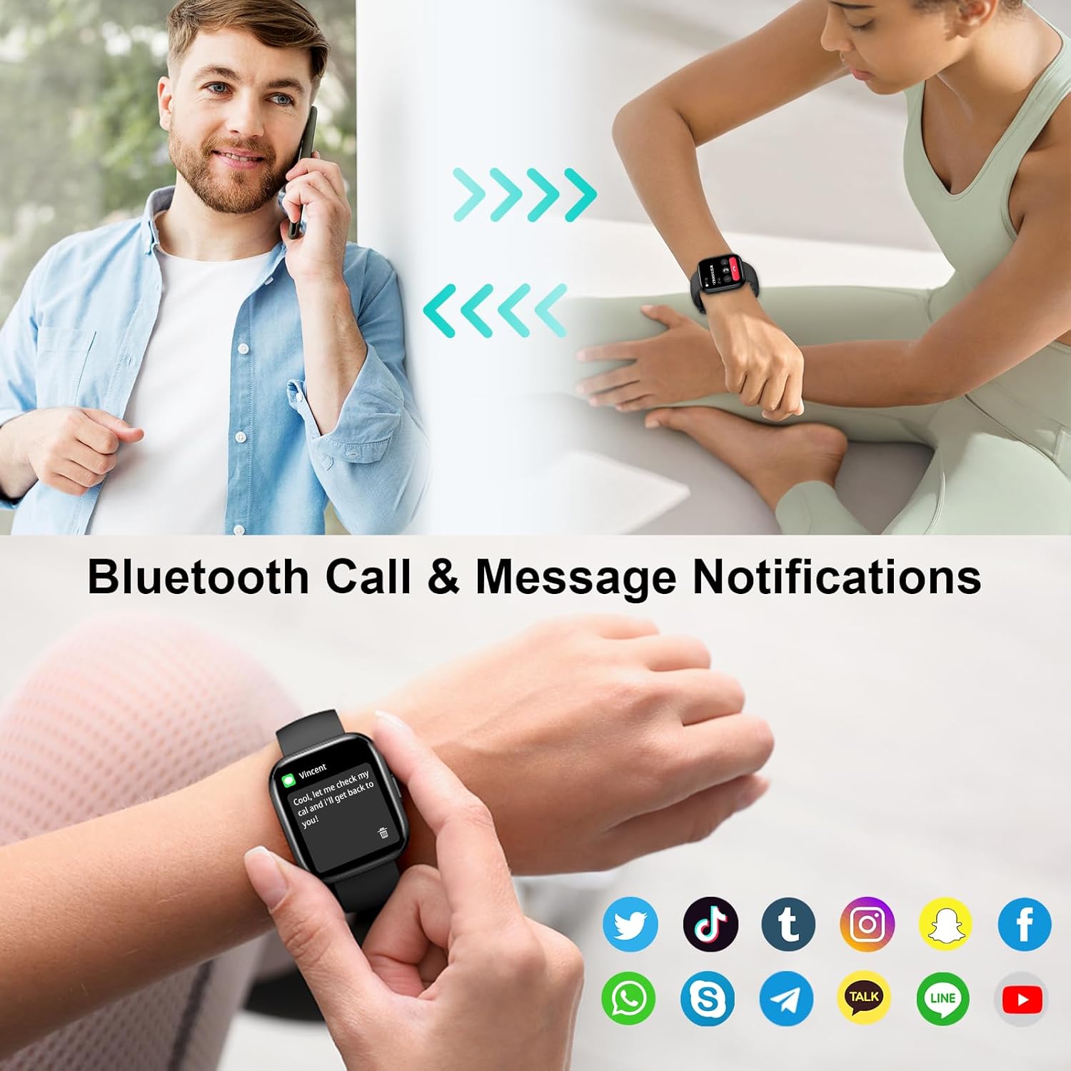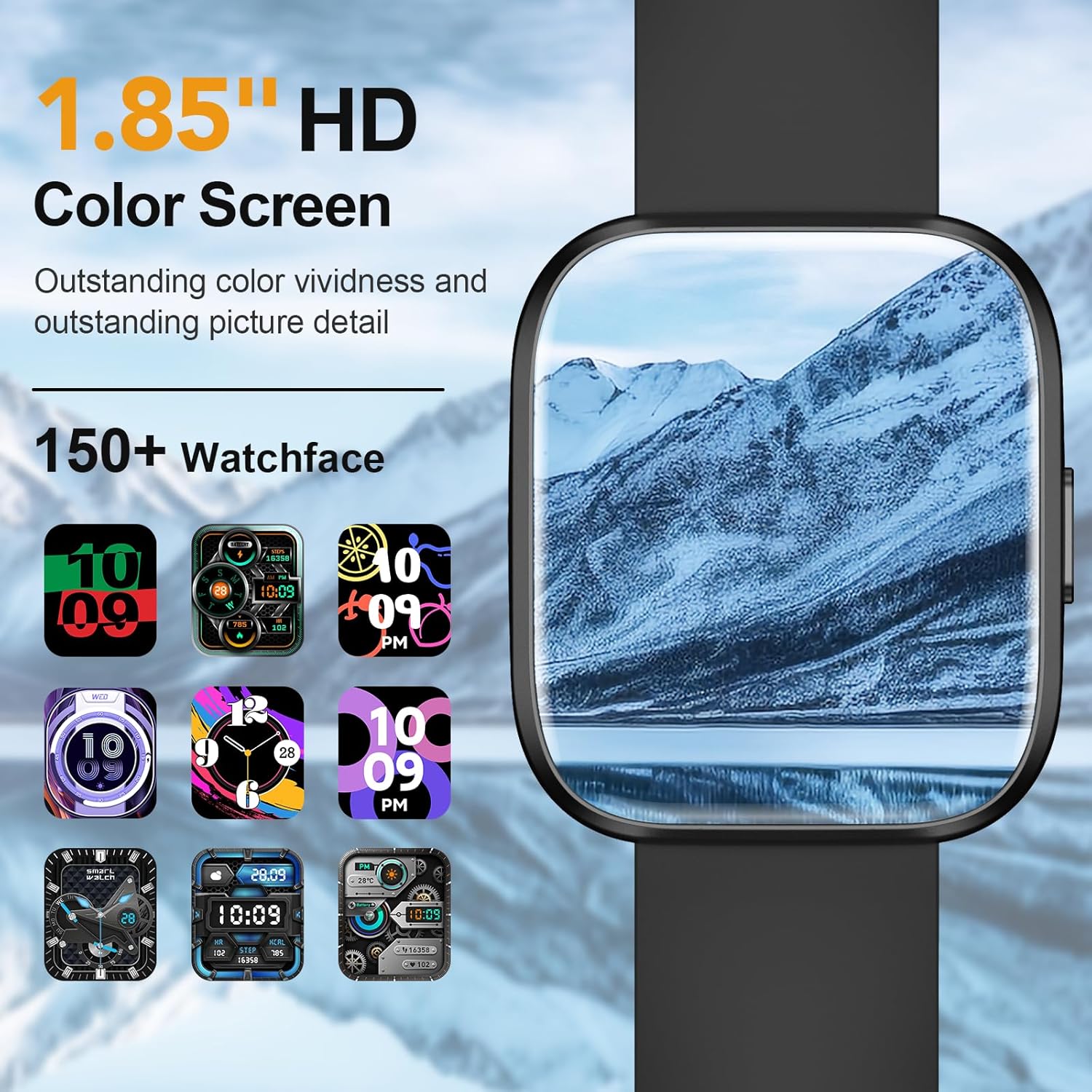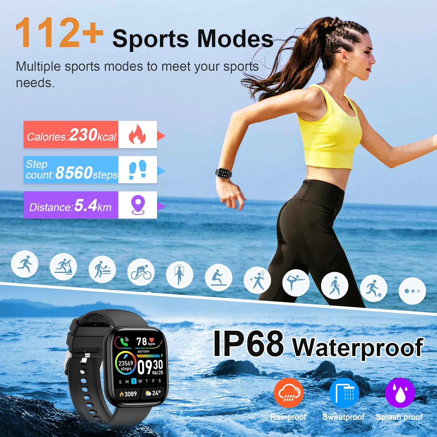 Niderson Smartwatch за мъже и жени 1.85 инчов HD Smart Watch с сензорен екран и функция за телефон, пулсомер, монитор за сън, 112 спортни режима, фитнес тракер, IP68 водоустойчив педометър, спортен часовник