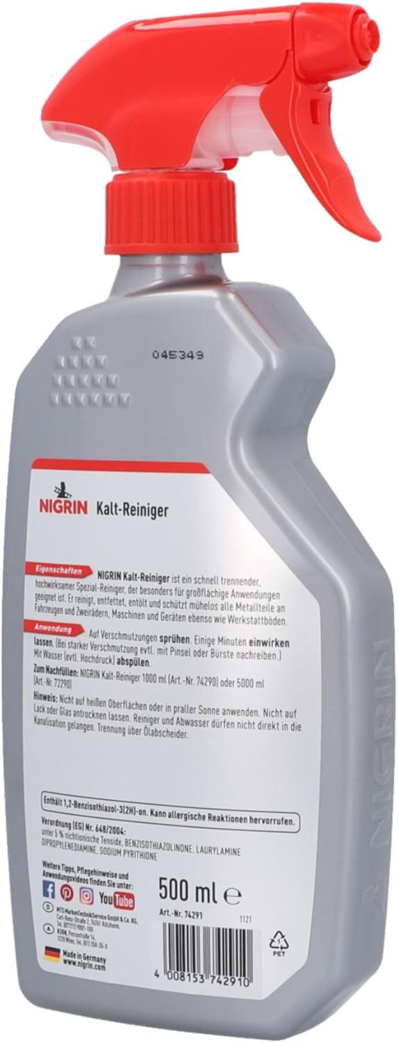 • Внимание: Студеният почистващ препарат NIGRIN има много добри проникващи свойства, така че достига дори до труднодостъпни места.