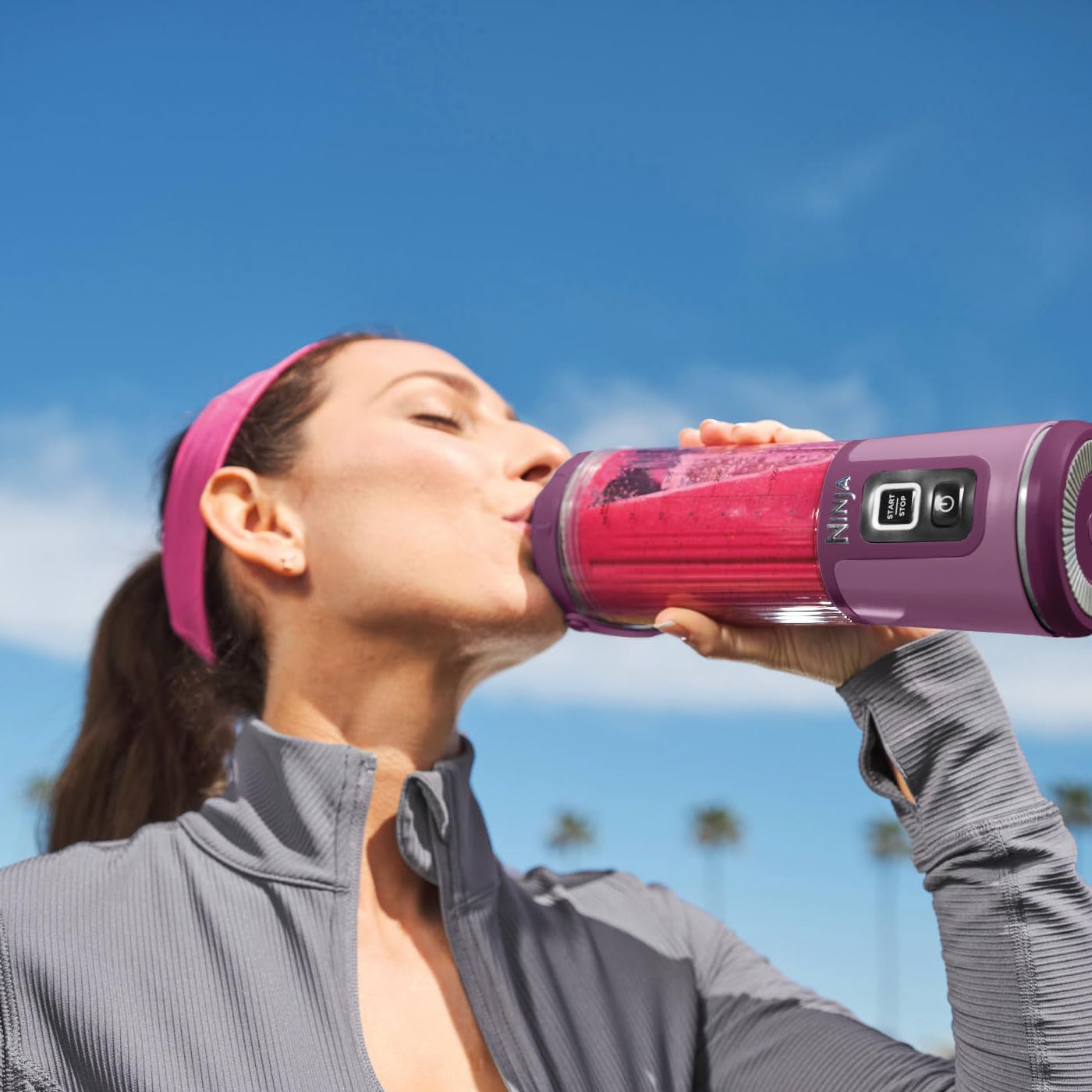 Ninja Blast BC151EUPR Преносим блендер / Блендер / Смути мейкър, 530 мл чаша, непропусклив капак, мощен мини миксер, безжичен и презареждаем, смачква лед и плодове, лилав