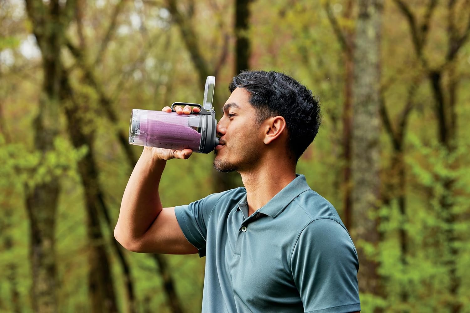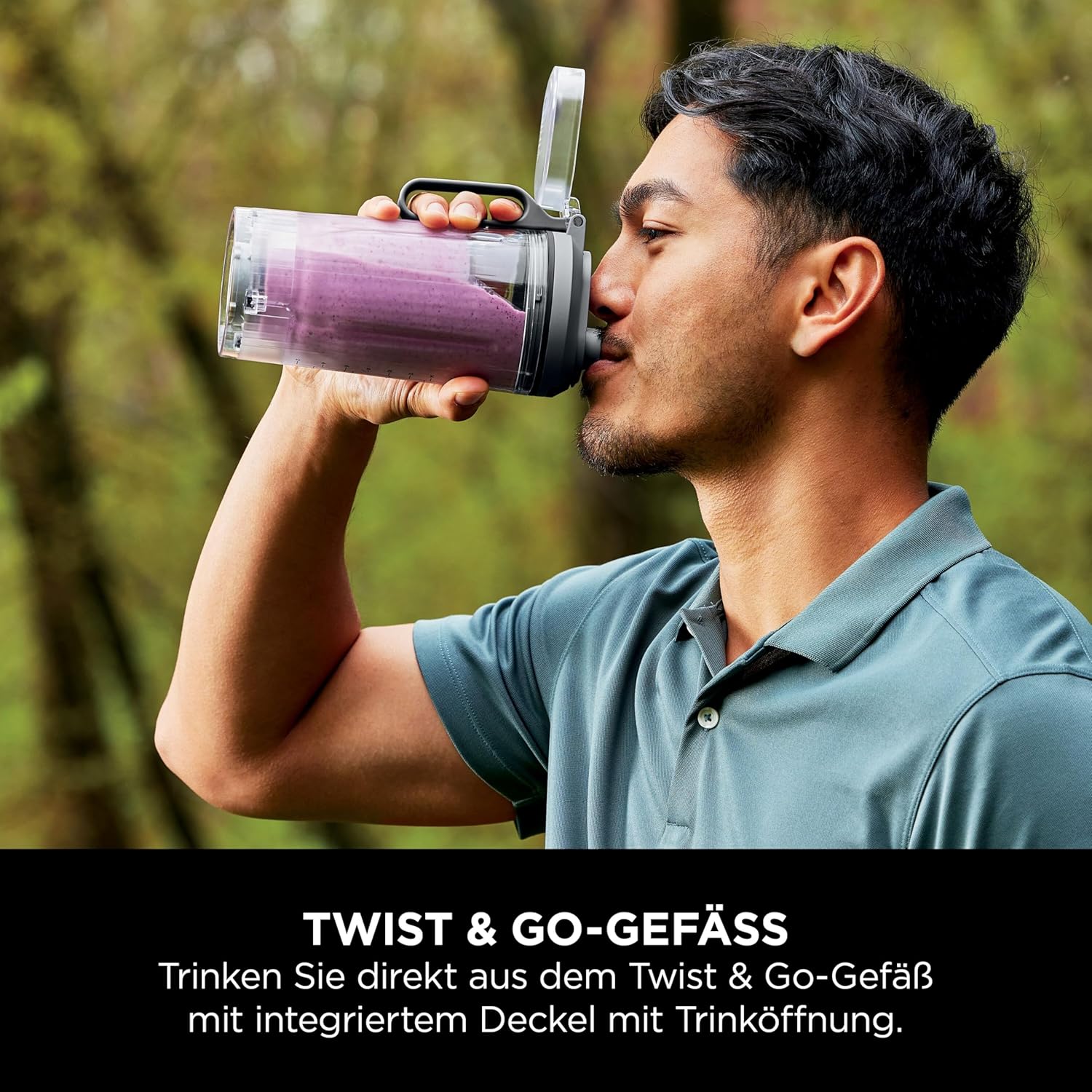 • Чаша за смесване 570 мл: с дизайна „twist-and-go“ можете да извадите чашата след смесване и да се насладите на смутита, шейкове и други, докато сте в движение. Включва капак против протичане, дръжка за носене и отвор за пиене (*490 мл максимален капацитет)