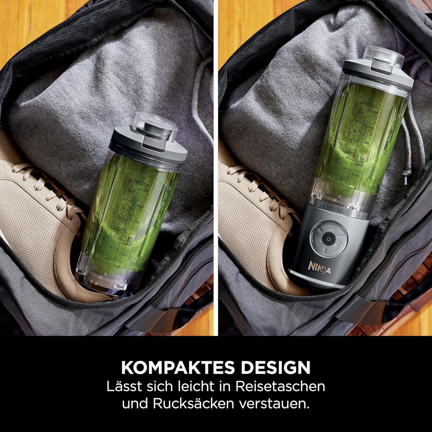 Ninja Blast Max BC251EUGY Преносим блендер/блендер/смути мейкър, 570 мл, презареждащ се, чаша за смесване и капак против протичане, 3 функции, смутита, протеинови шейкове, хладно сиво