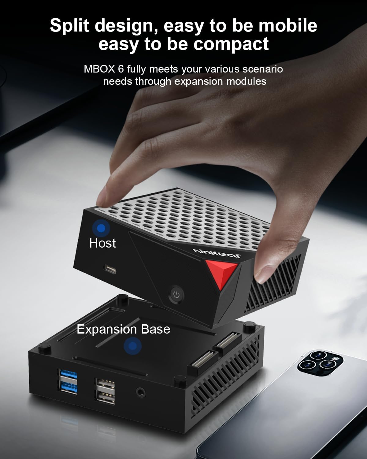 Ninkear Mini PC W-11, Мини компютър с AMD Ryzen 5 6600H (до 4.5GHz), 16GB DDR5 RAM 512GB M.2 SSD микро геймърски компютър, 4K троен дисплей, HDMI/DP/USB-C/WiFi 6/BT 5.2, подходящ за офис, игри