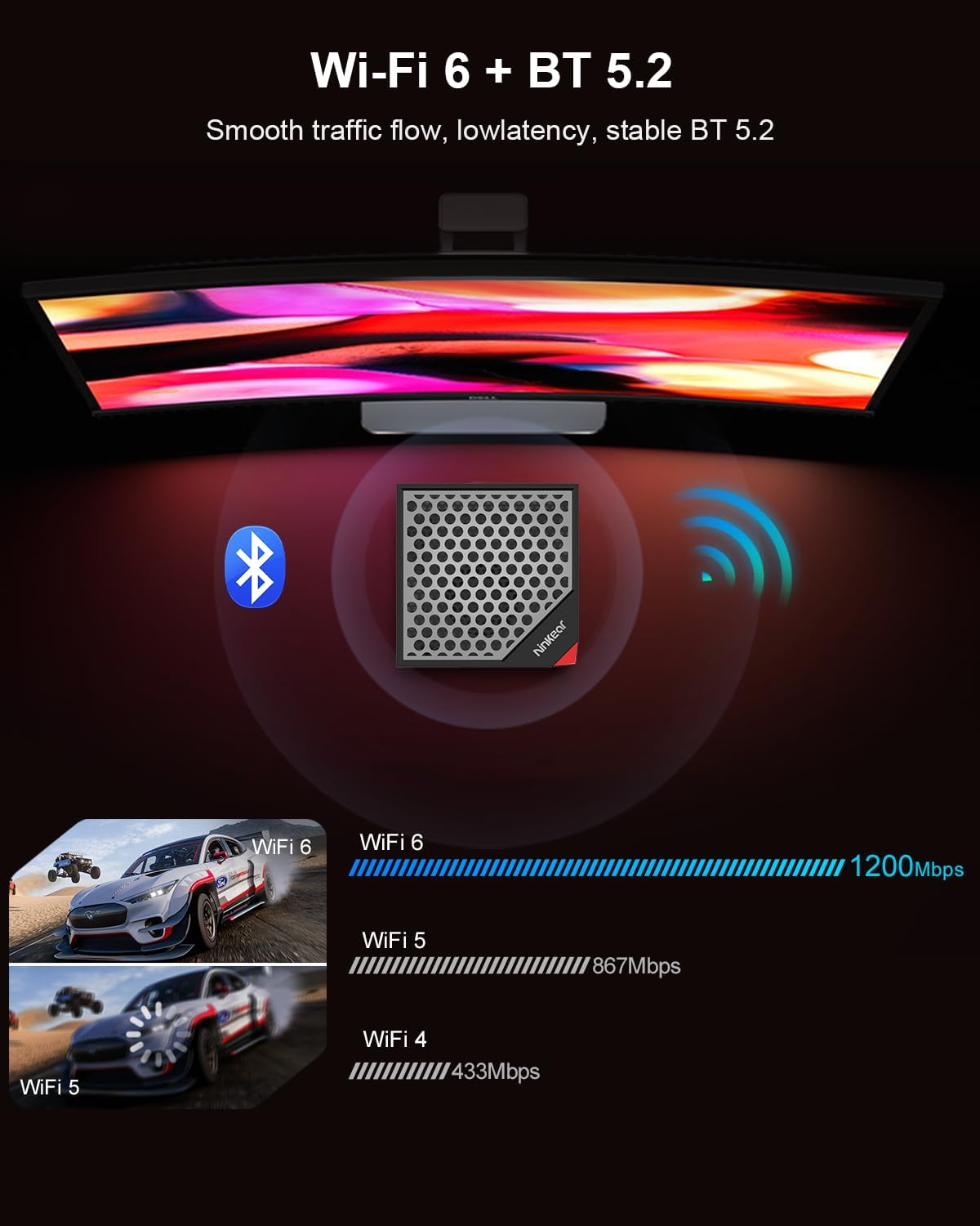 • Компактен размер, лесен за носене: Нашият микро компютър е с размери само 9,9 x 9,9 x 3,3 см и тежи само 248 г. Подходящ е за поставяне на бюро, където пространството е ограничено, или за окачване зад монитора или на стената, спестявайки много място. Компактният му размер го прави лесен за носене и може да бъде свързан към монитор или проектор по всяко време и навсякъде, което го прави идеален за работа в офис, срещи, пътуване, употреба на открито и др.