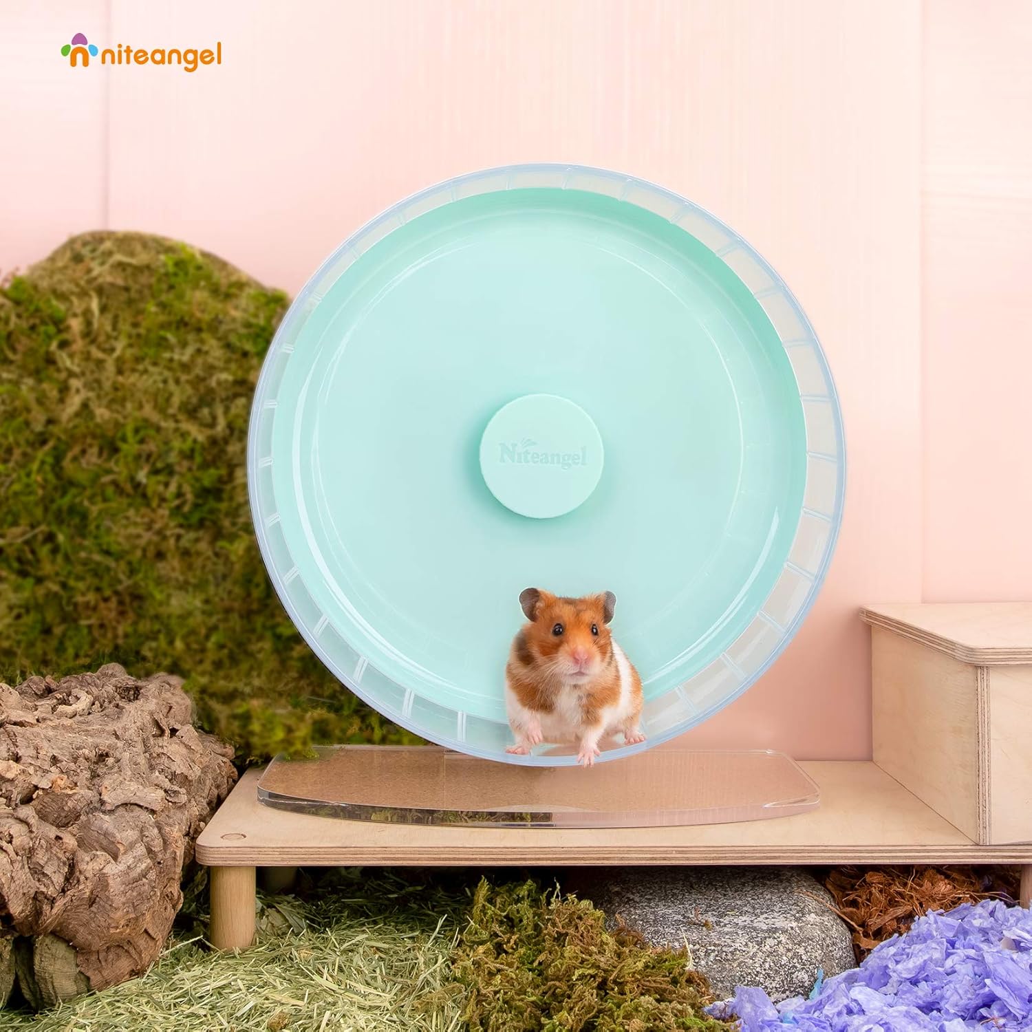 Niteangel Супер тихи колела за хамстери - Тихи въртящи се колела за хамстери с регулируема стойка за джуджета, джербили, мишки или други малки животни (L, ментово зелено)