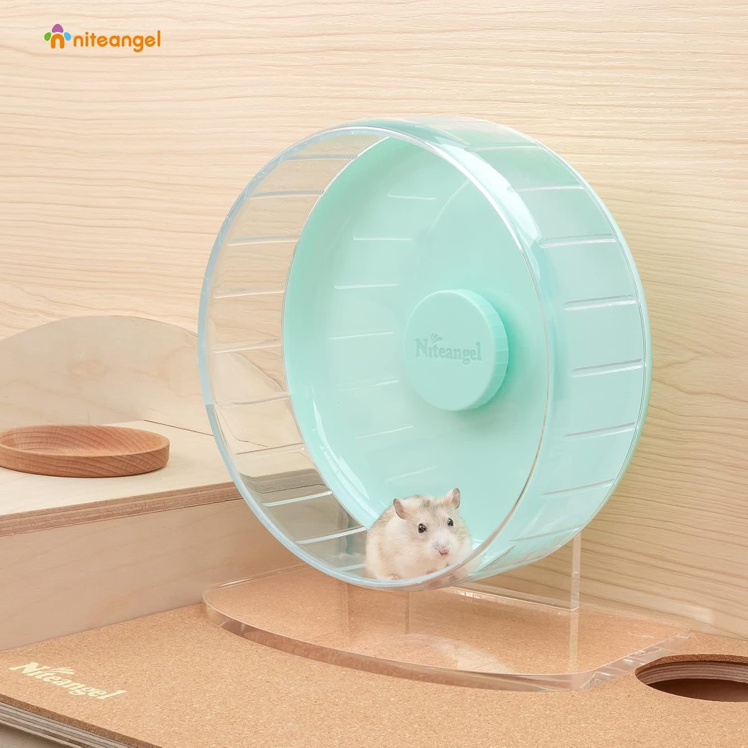 Niteangel Супер тихи колела за хамстери - Тихи въртящи се колела за хамстери с регулируема стойка за джуджета, джербили, мишки или други малки животни (S, ментово зелено)