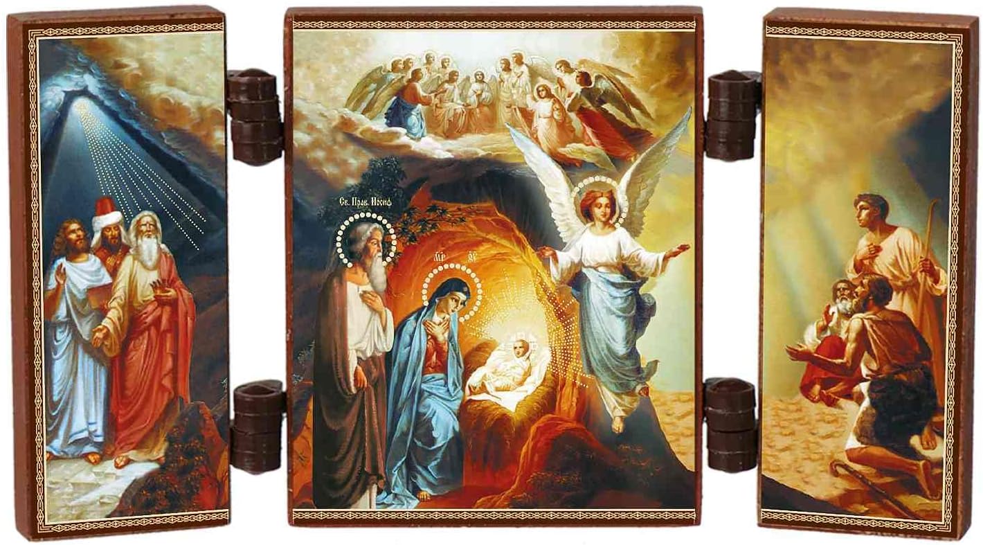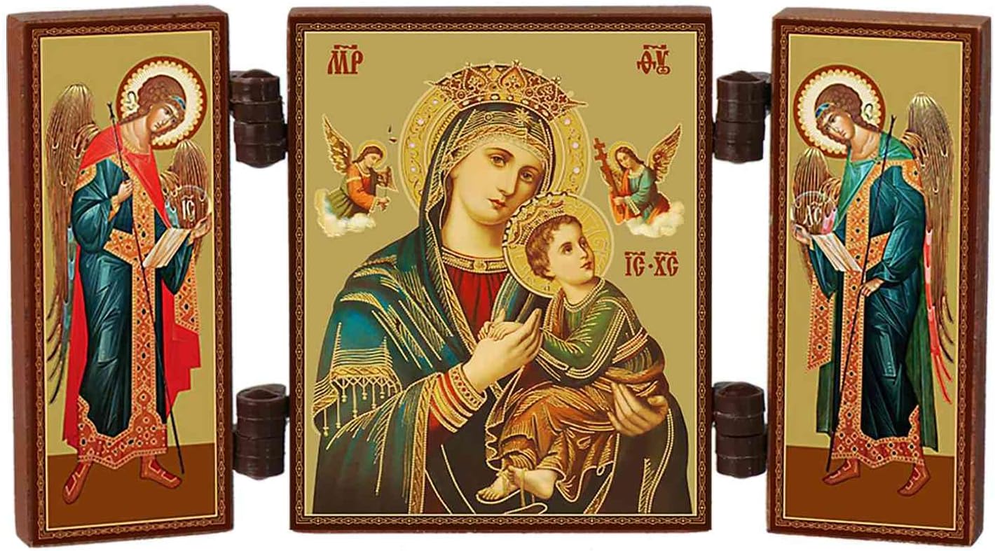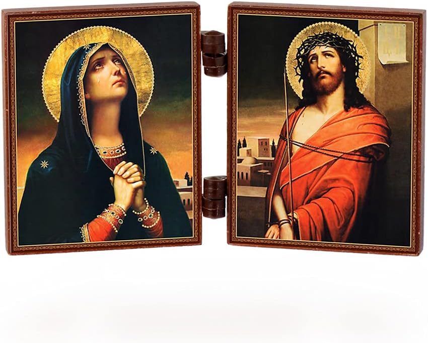 Те предлагат висококачествена триптих/диптих икона с християнски мотиви и подвижни странични панели за затваряне на средната част. Принтът е покрит със специално защитно покритие и по този начин е защитен от UV лъчи за дълготрайни интензивни цветове.