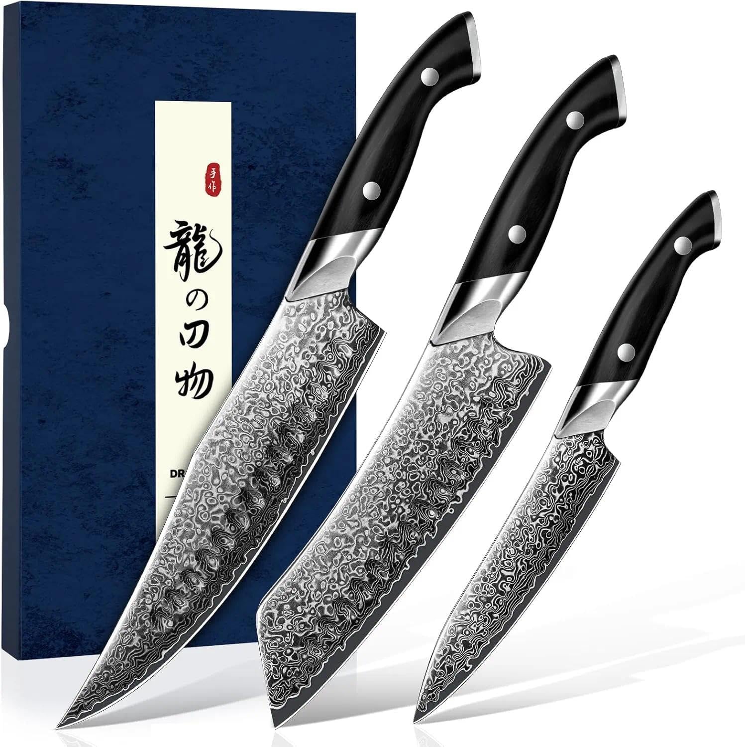 Нож DRAGON RIOT Damascus, японски нож за месо, изключително остър, ръчно кован нож за готвач, професионален нож, кухненски нож Damascus с подаръчна кутия