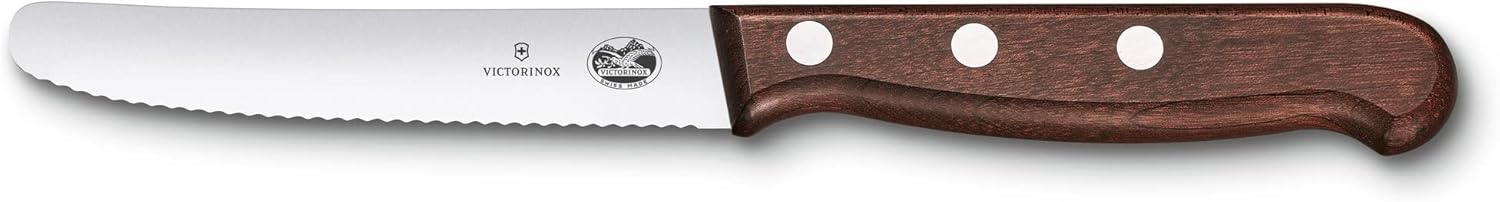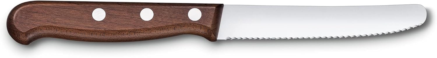 Нож Victorinox Wood за домати и трапеза, 11 см, ергономична дървена дръжка и назъбен ръб, острие от неръждаема стомана, модифицирано кленово дърво