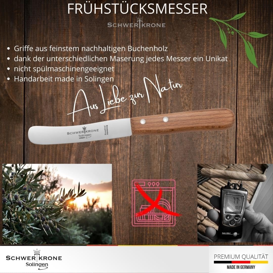 Нож за хляб Sword Crown Buckelsmesser Нож за закуска от Солинген, произведен в Германия, бук (1 брой)