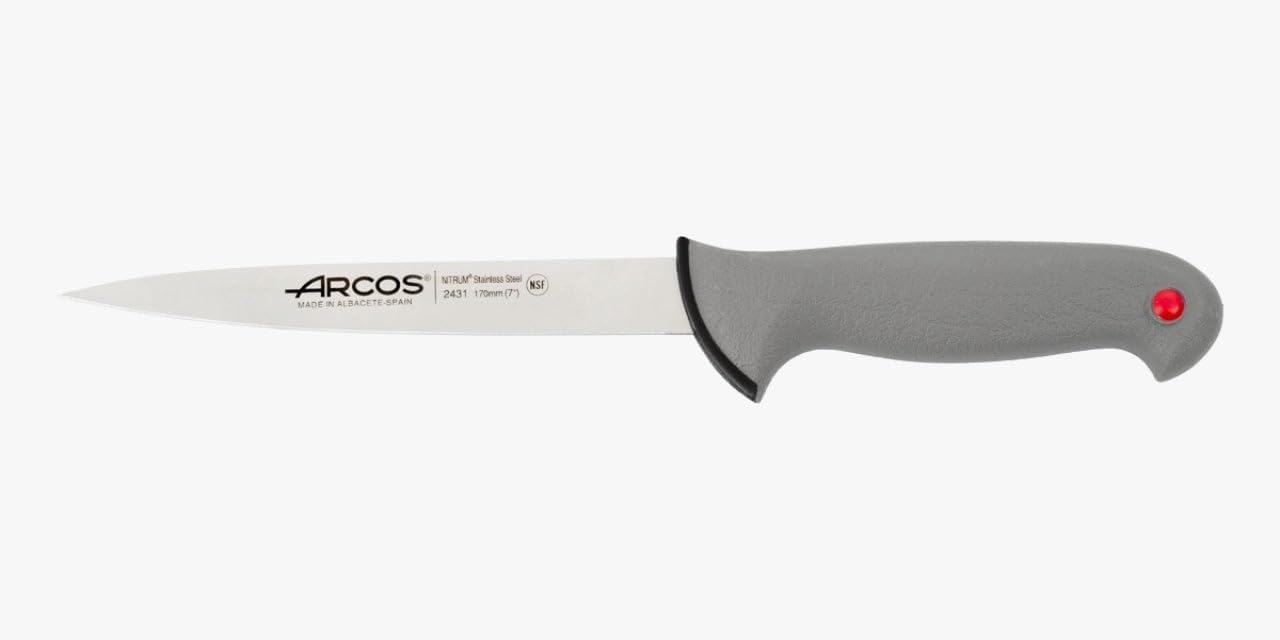Нож за риба Arcos NITRUM от неръждаема стомана 18 см - Идеален за риба/морски дарове, полипропиленова дръжка с еластомерно покритие - Черен, серия Pruebas