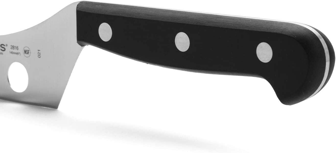 Нож за сирене Arcos 190 мм, изработен от неръждаема стомана Nitrum - острие 150 мм, ергономична дръжка от полиоксиметилен (POM) - черен цвят, универсална серия