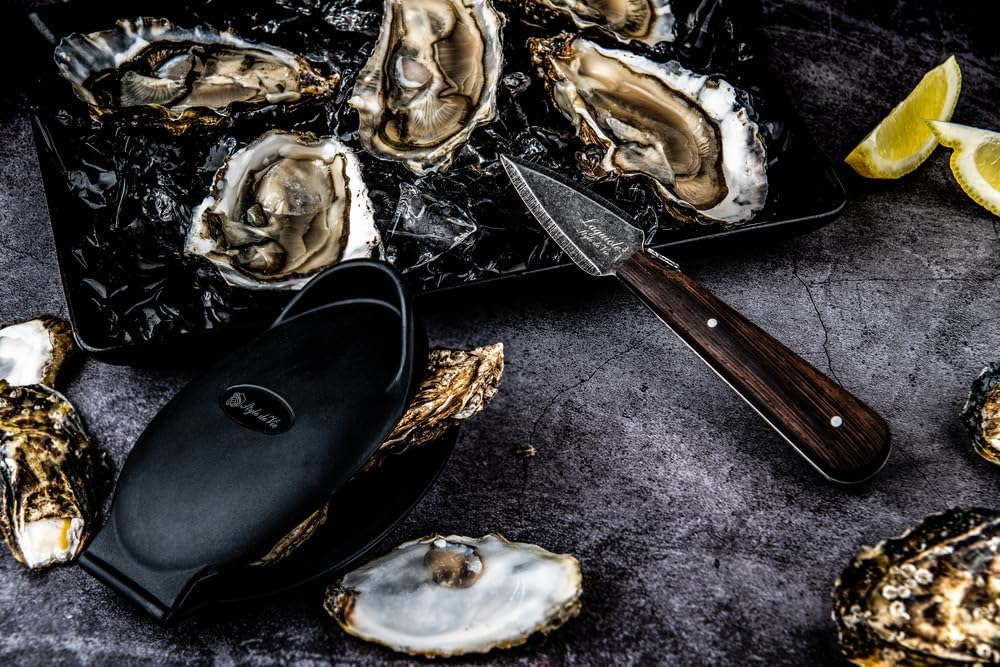 Ножът за стриди има острие от неръждаема стомана и луксозна дръжка от венге. Това придава на ножа уникален вид!