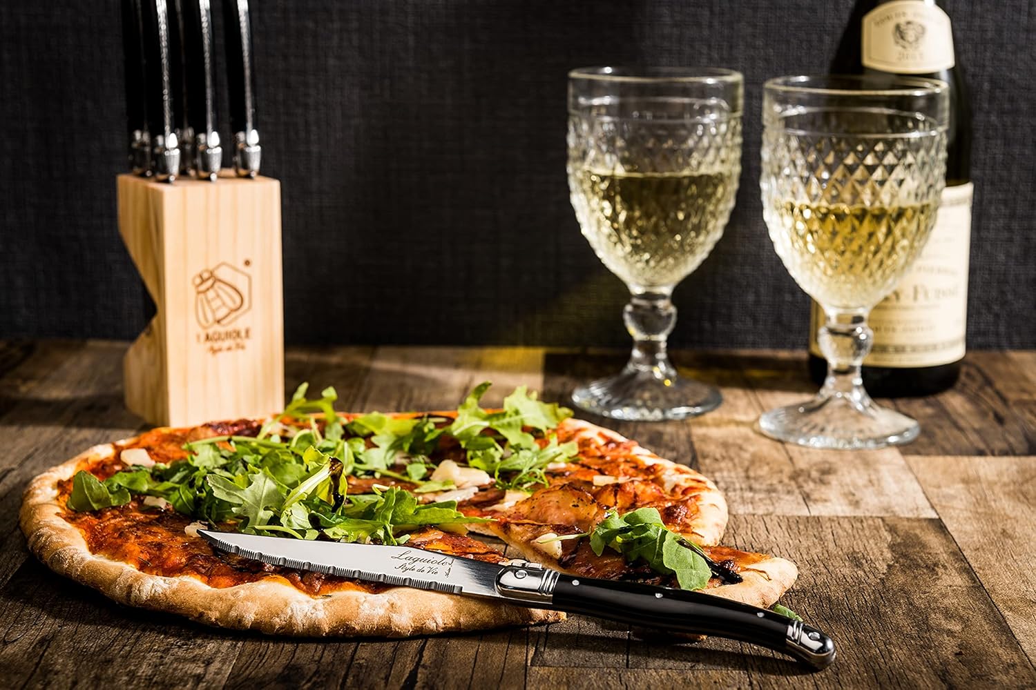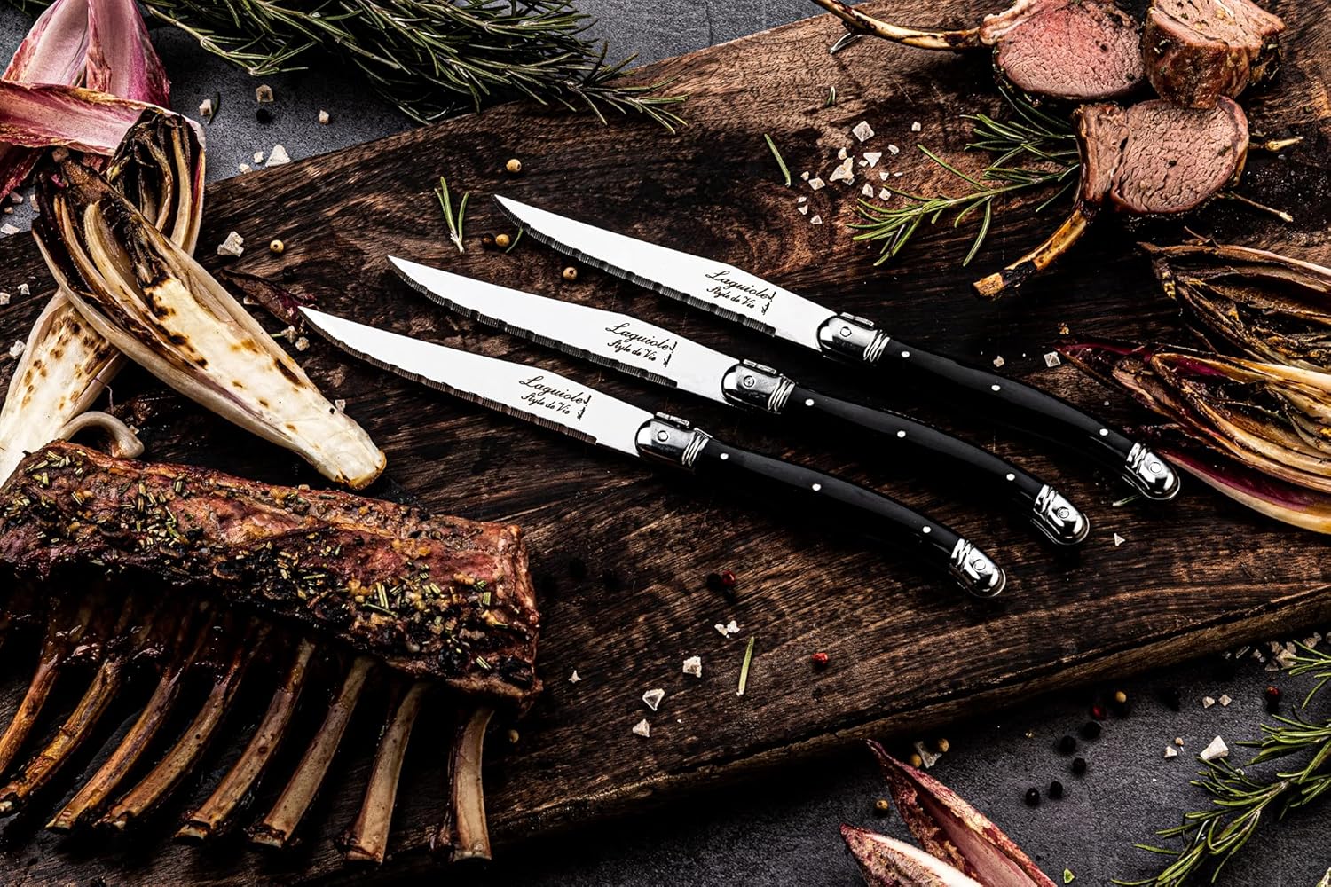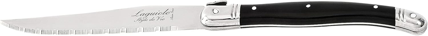 Комплектът ножове за стек Laguiole Style de Vie Premium Line се състои от 6 назъбени ножа за стек. Ножовете за стек са изработени от неръждаема стомана с черни пластмасови дръжки.