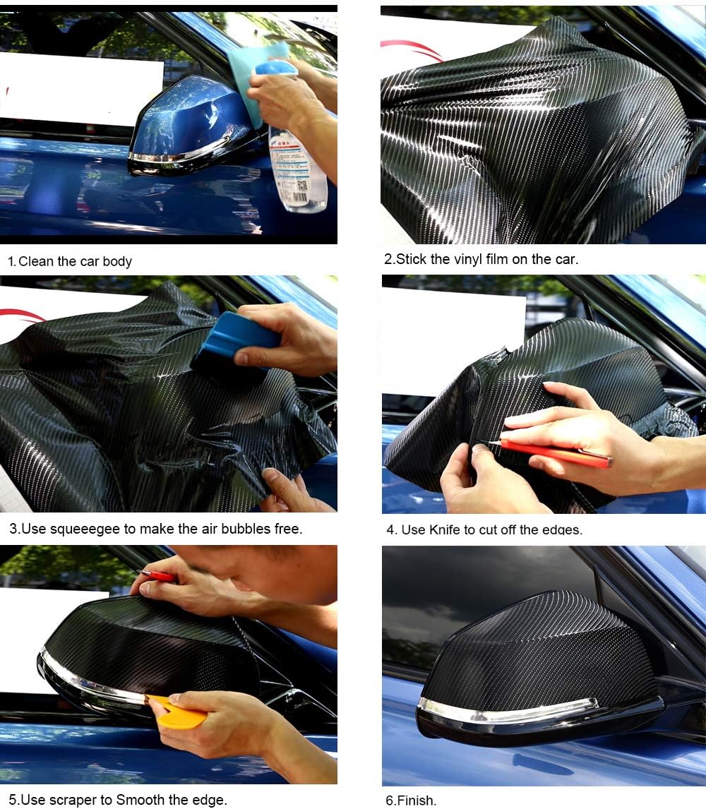 3D виниловото фолио от въглеродни влакна може да се използва за: преден капак, задна врата, спойлер, устни, странични решетки, странични огледала, предно стъкло, интериорна облицовка, калници, дръжки на вратите, гуми, ауспуси, табло, волан, вътрешни дръжки на вратите, жабки, контролен панел на автомобила и др. Други приложения: като мобилен телефон, капак на лаптоп, компютърни китари/барабани, високоговорители, портфейли, калъфи за албуми, клипборд, спортна екипировка, принтер, DVD плейър, както и домашни мебели.