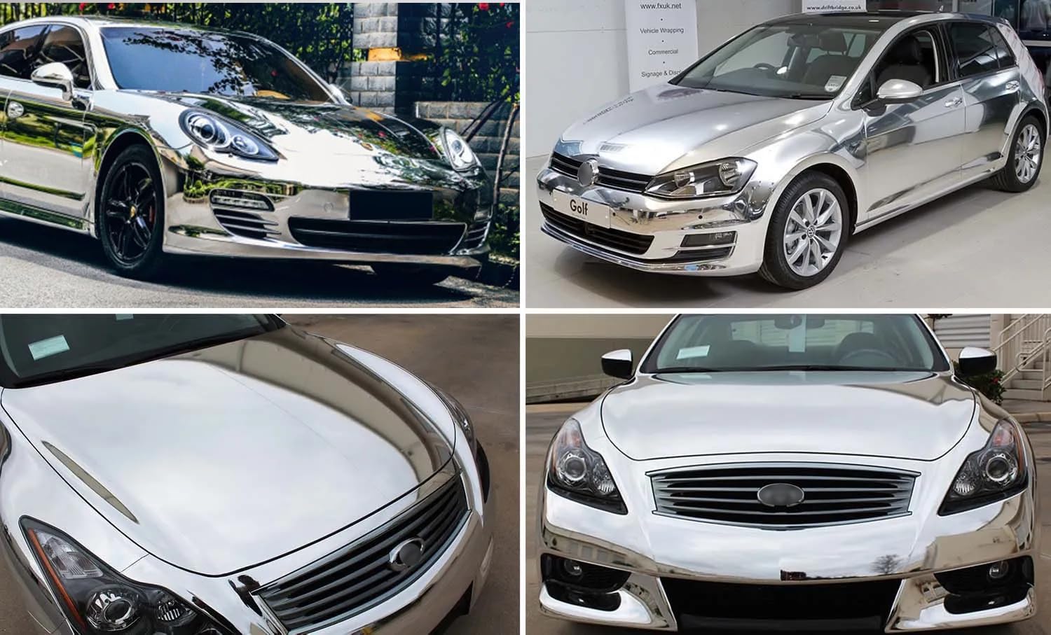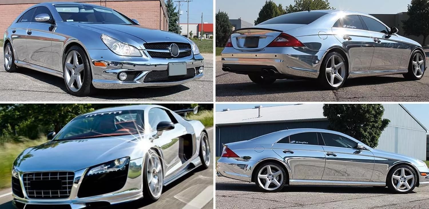 Новото хромирано огледално винилово фолио може да се използва за: преден капак, задна врата, спойлер, устни, странични решетки, странични огледала, предно стъкло, интериорна облицовка, калници, дръжки на врати, джанти, ауспуси, табло, волан, вътрешни дръжки на врати, жабки, контролен панел на автомобила и др. Други приложения: като мобилен телефон, капак на лаптоп, компютърни китари/барабани, високоговорители, портфейли, калъфи за албуми, очила, клипборд, спортна екипировка, принтер, DVD плейър, както и мебели за дома.