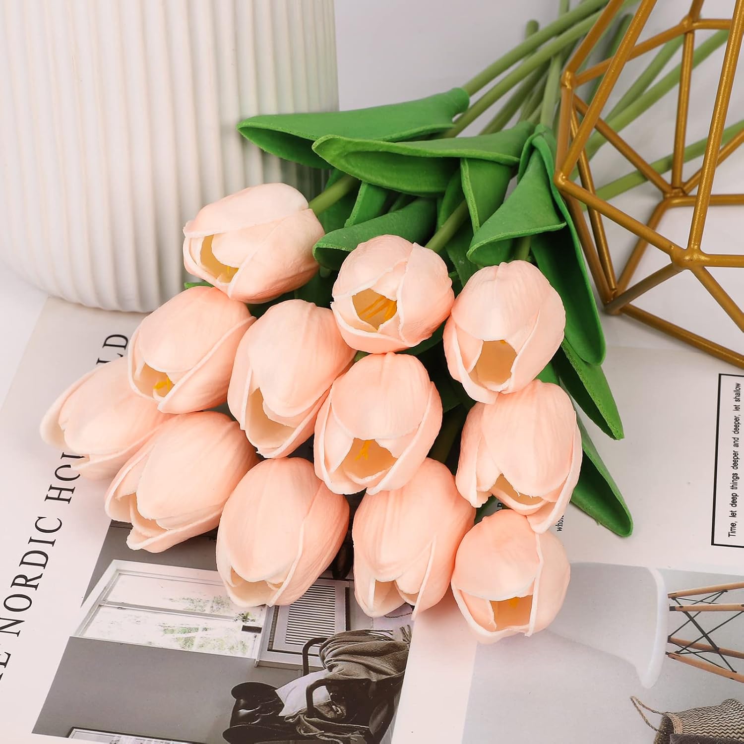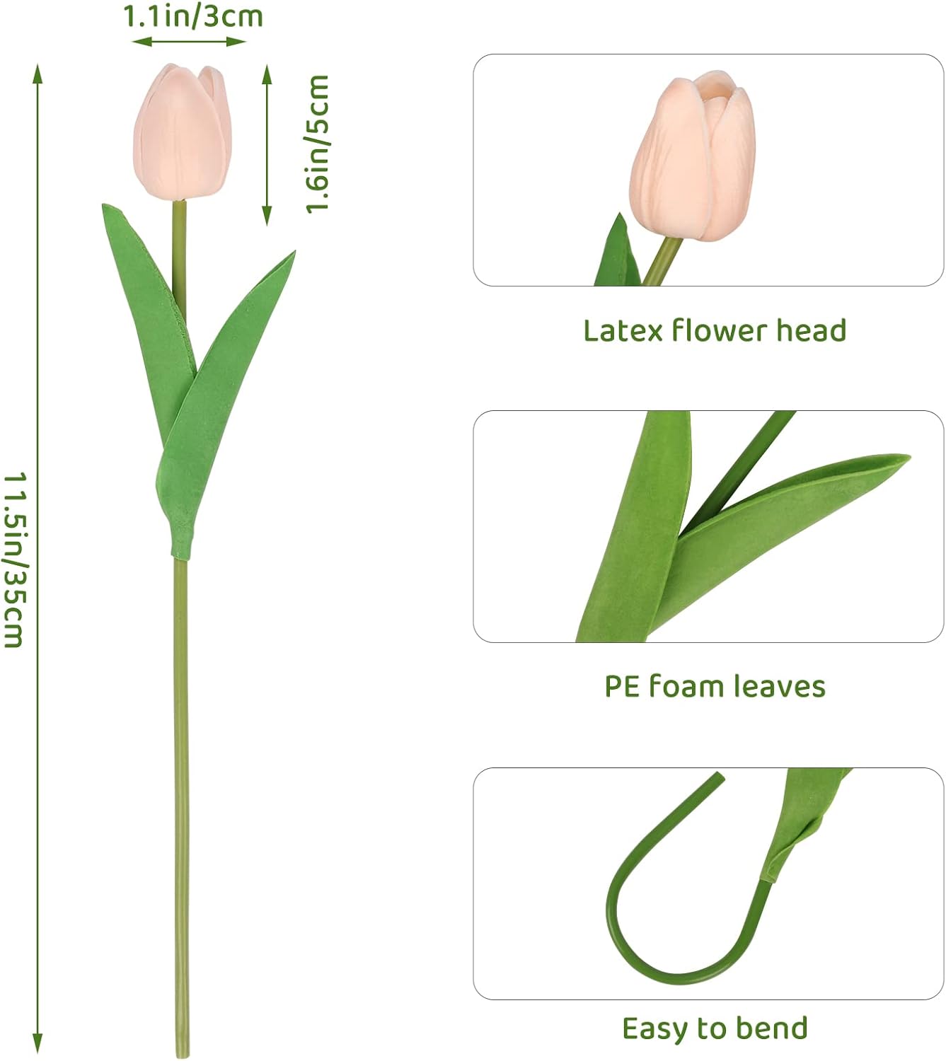 • С дължина от около 35 см, тези изкуствени лалета са красива и лесна за поддръжка декорация за всяка стая. Имитациите на лалета са подходящи за повечето вази.