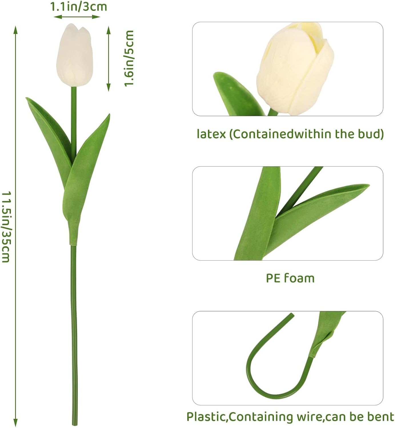 • С дължина от около 35 см, тези изкуствени лалета са красива и лесна за поддръжка декорация за всяка стая. Имитациите на лалета са подходящи за повечето вази.