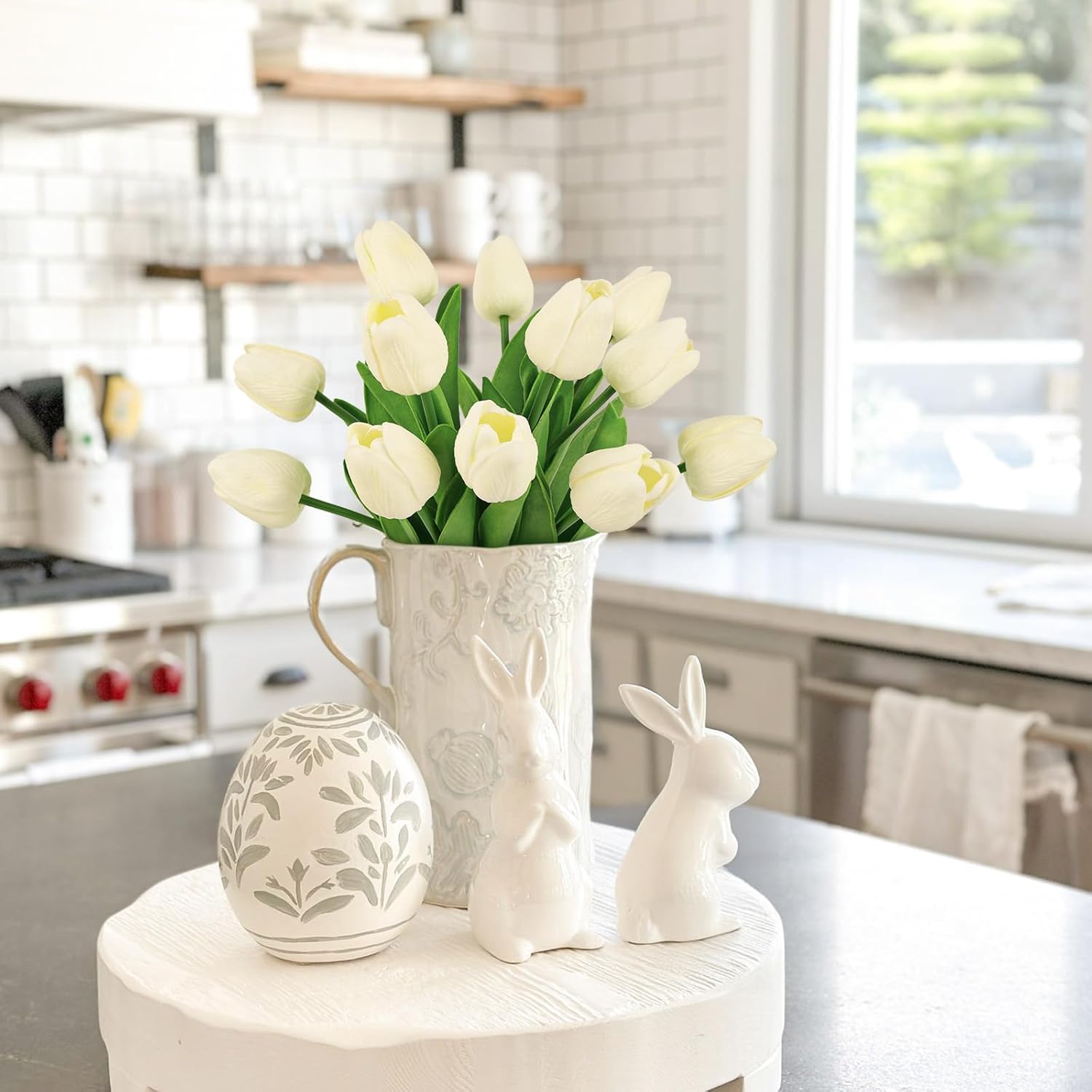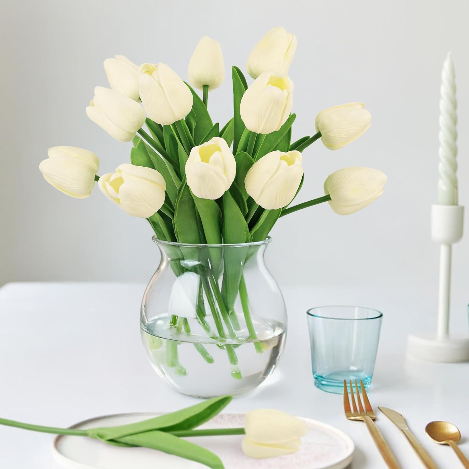 N&T NIETING Изкуствени лалета, 12 броя изкуствени цветя от PU латекс с реалистично усещане, аранжировки от изкуствени лалета за сватбен букет, парти, рожден ден, дом, офис