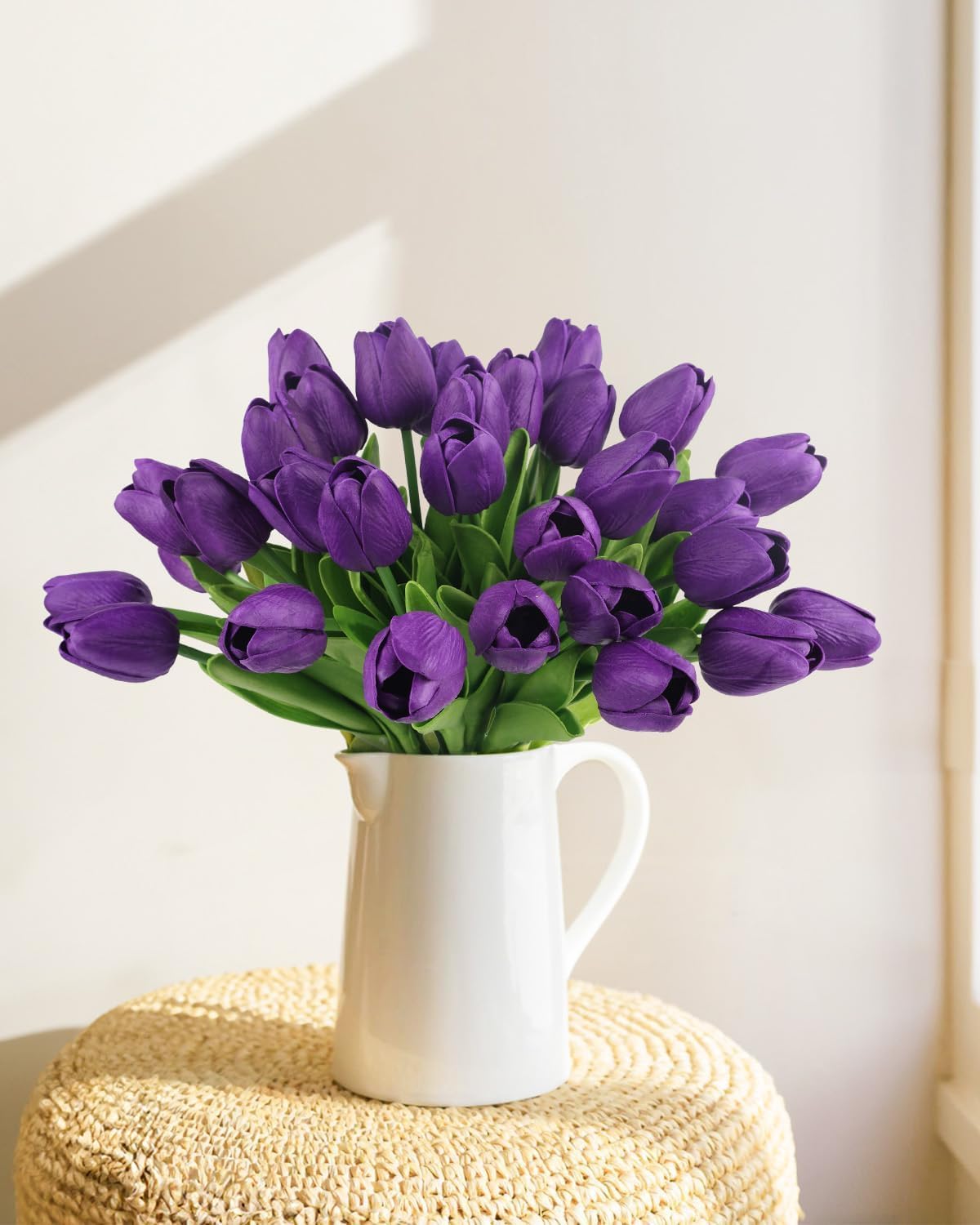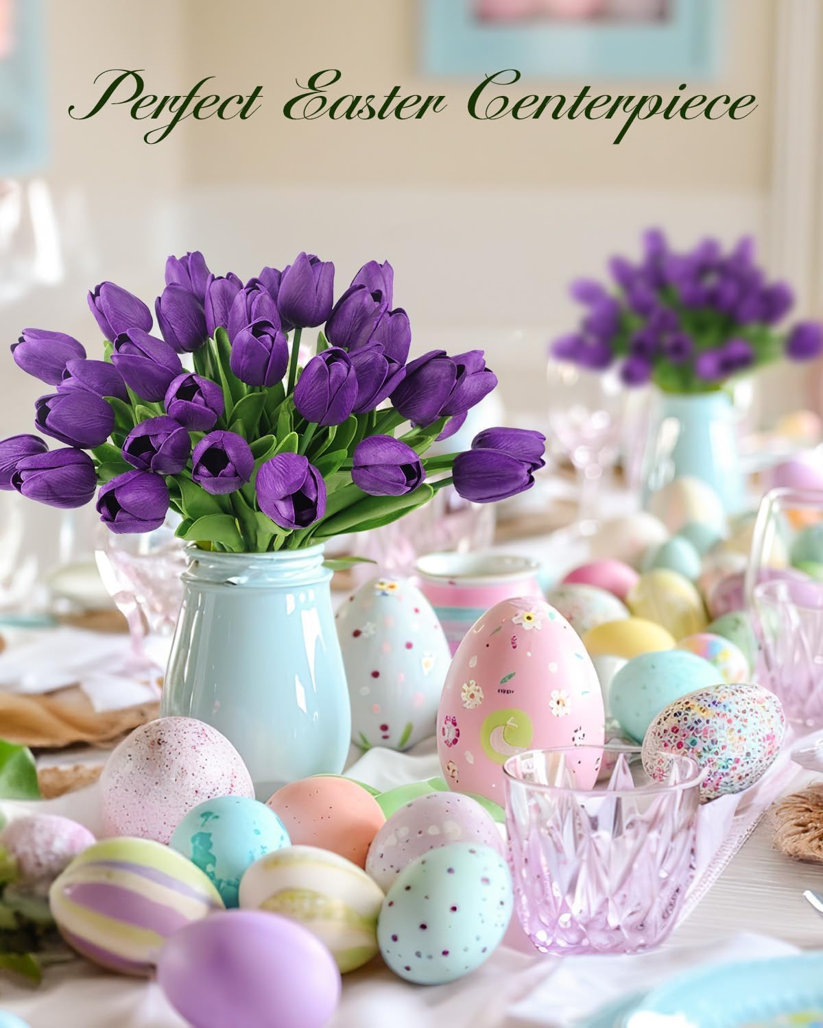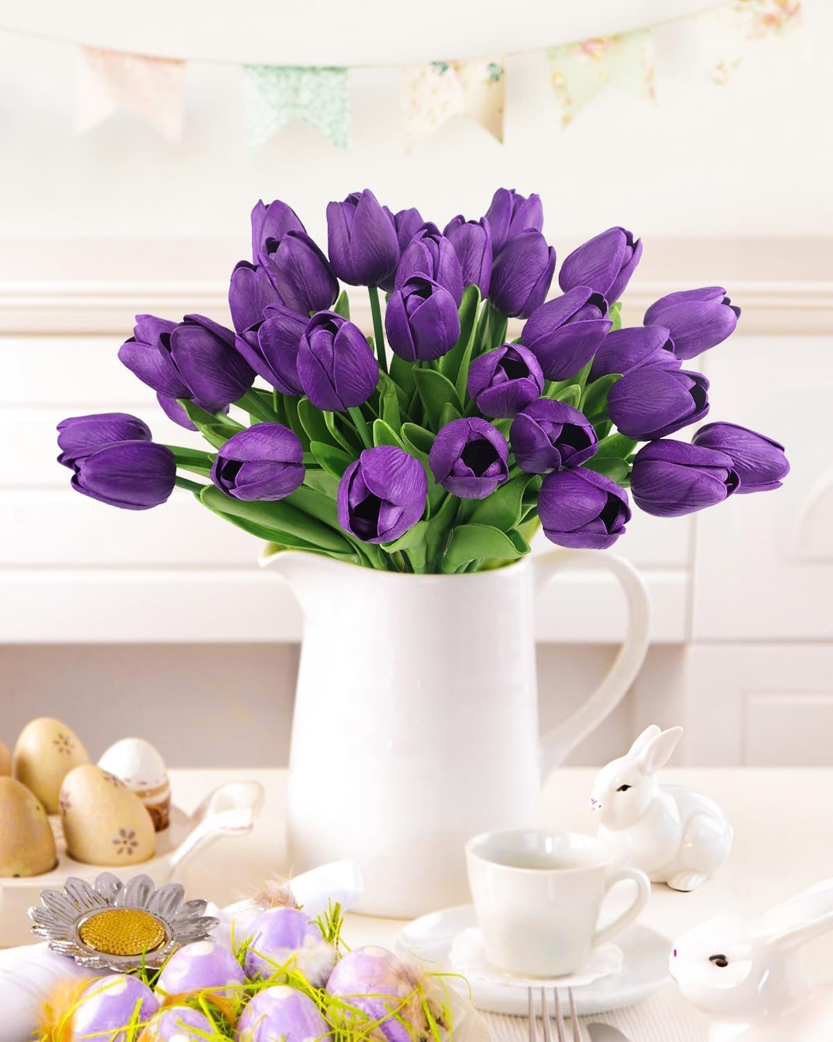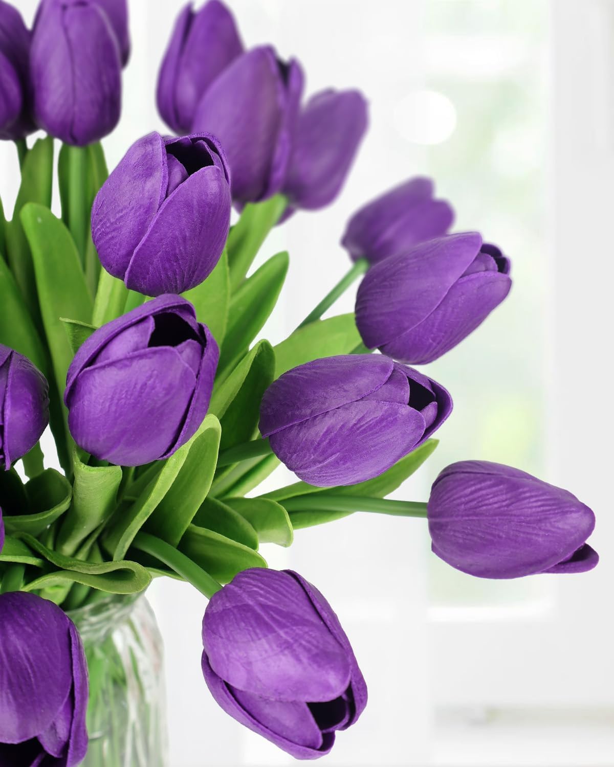 N&T NIETING Изкуствени лалета, Фалшиви цветя, Пакет от 12 латексови цветя с истински лалета за Направи си сам сватба Дом Градина Хотел Парти Офис Декорация (Наситено лилаво)