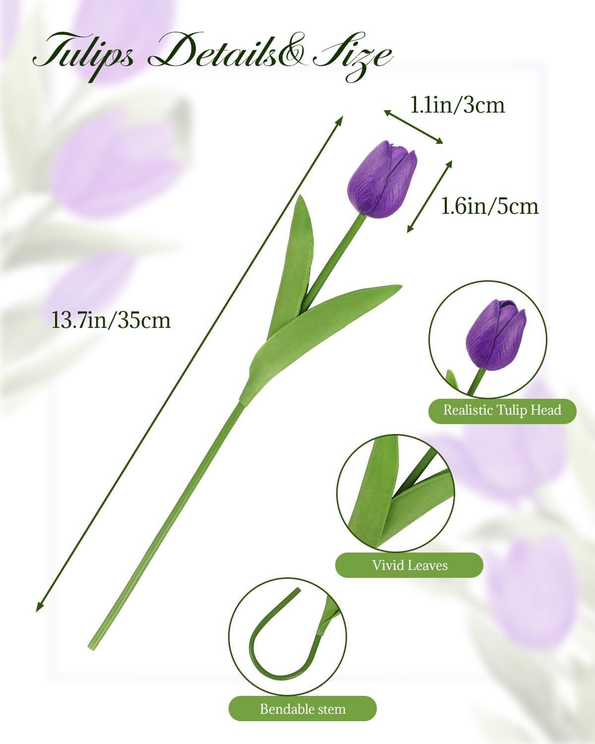 • С дължина от около 35 см, тези изкуствени лалета са красива и лесна за поддръжка декорация за всяка стая. Имитациите на лалета са подходящи за повечето вази.