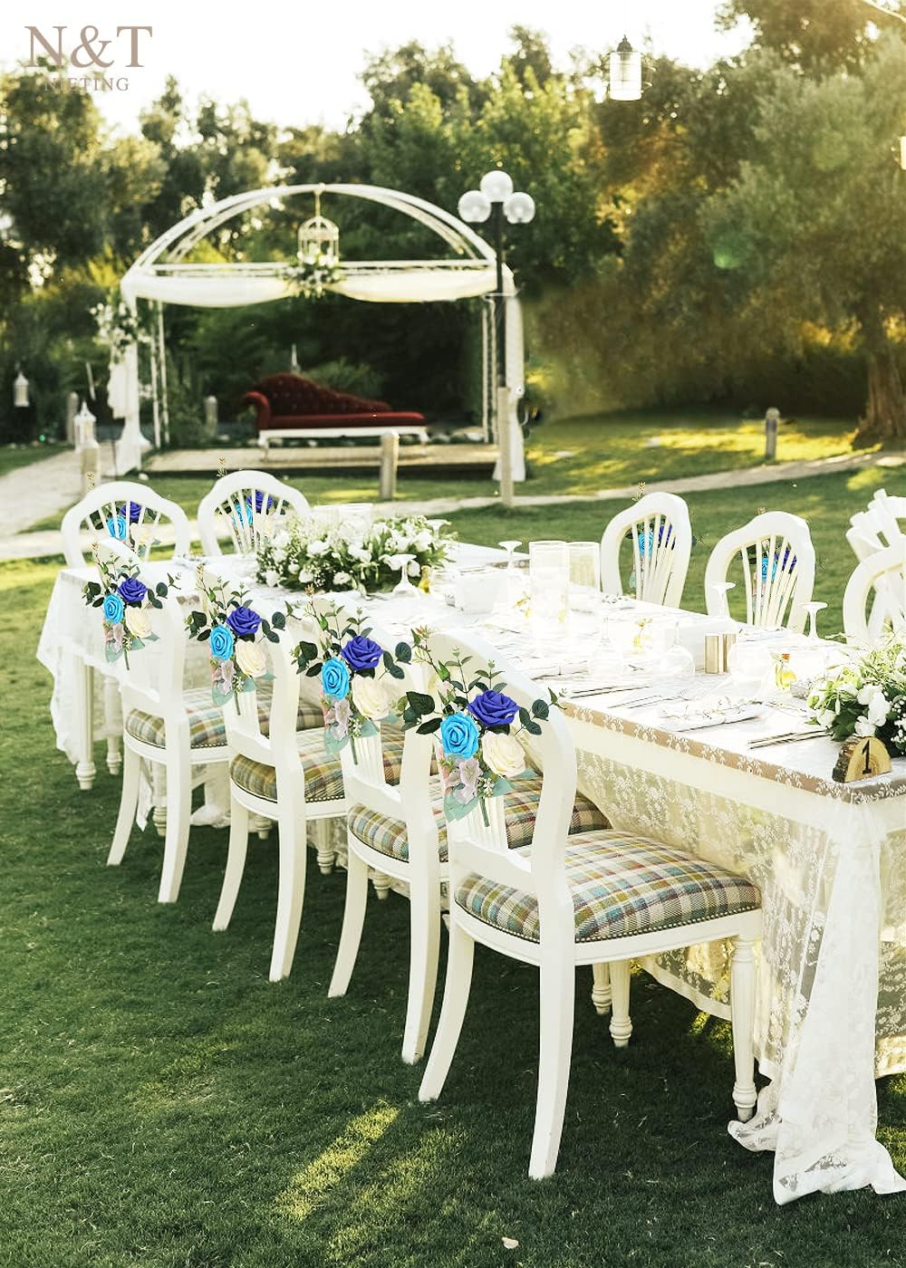N&T NIETING Изкуствени рози, пакет от 25, декоративни цветя, изкуствени рози със стъбла, за „Направи си сам“ сватбени букети, парти маси, декорации за дома, декорации за булчински домове, микс от сини
