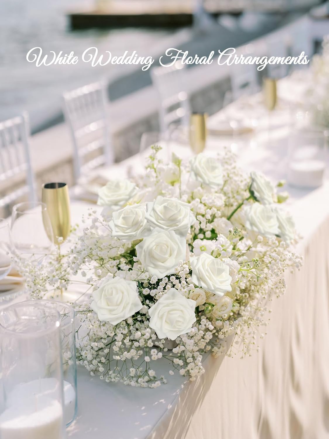 N&T NIETING Изкуствени цветя, пакет от 50, истинско усещане, бели цветя, изкуствени рози, за декорация за „Направи си сам“ сватбени букети, централни елементи, моминско парти, домашна цветна аранжировка (бели)