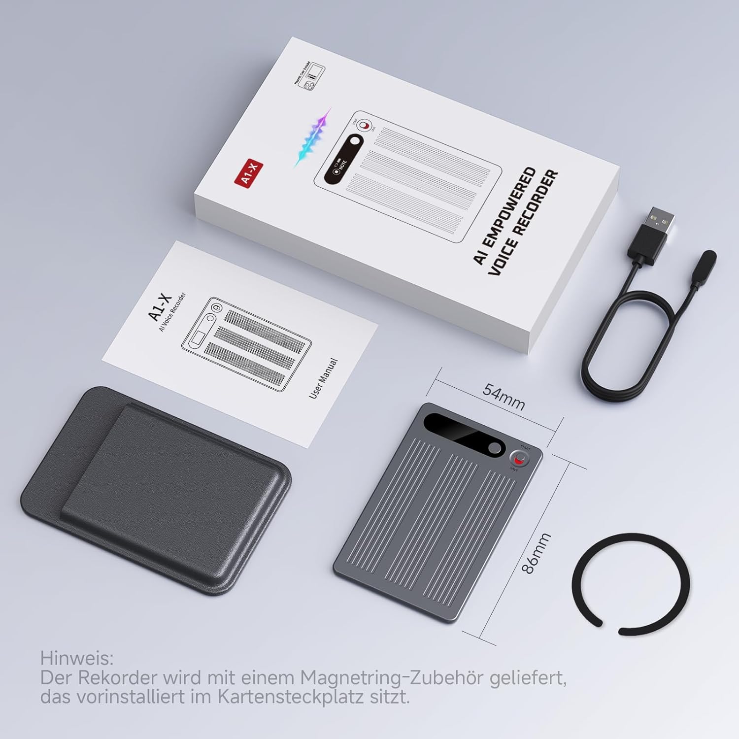 • Компактен дизайн, дълго време на работа: С тегло само 30 г и дебелина 3 мм, AI ​​гласовият рекордер се побира лесно в джоба или куфарчето ви. До 30 часа непрекъснат запис и 1000 часа аудио памет с 64GB памет. Изработен от издръжлива алуминиева сплав и с дисплей за режим на запис, ниво на батерията и състояние - винаги имате контрол.