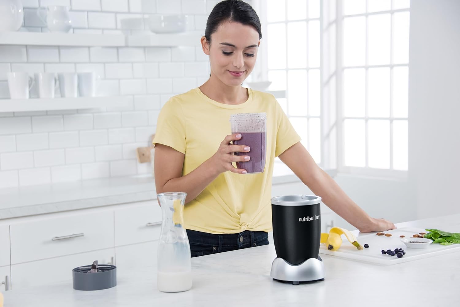 nutribullet Original 600 Електрически блендер, чопър, миксер за смутита, машина за смутита, 600 W, за вкъщи 700 мл и 500 мл, черен, NB606B