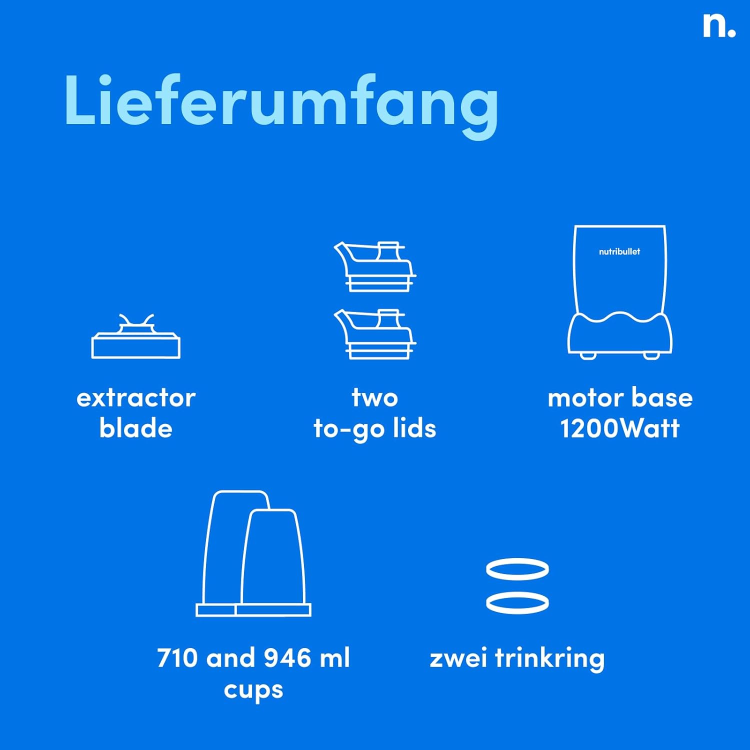 Nutribullet Pro 1200, електрически миксер, чопър, блендер за смутита, многофункционален миксер, мощност 1200 W, буркани 700 мл и 900 мл, черен, NB120MB
