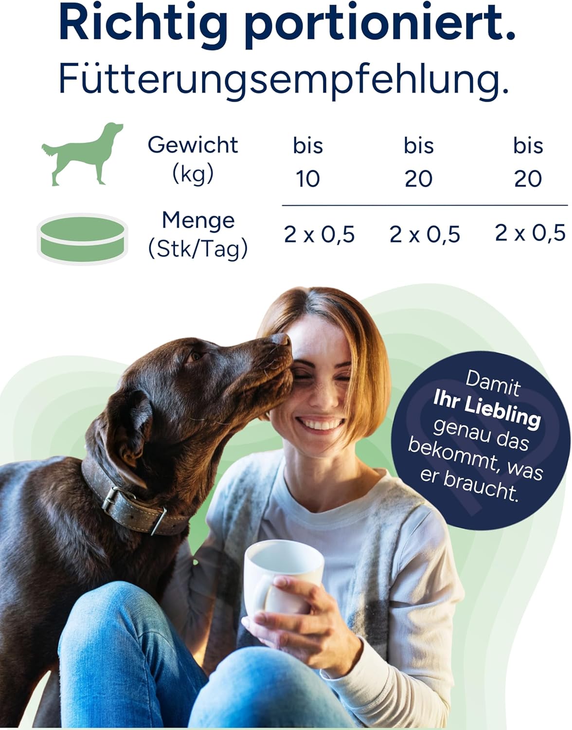 Дозировка на ден според теглото на кучето: до 10 кг: 2 x 0,5 дъвчащи таблетки; до 20 кг: 2 x 1 дъвчаща таблетка; до 30 кг: 2 x 1,5 дъвчащи таблетки; до 40 кг: 2 x 2 дъвчащи таблетки; до 50 кг: 2 x 2,5 дъвчащи таблетки; над 50 кг: 2 x 3 дъвчащи таблетки