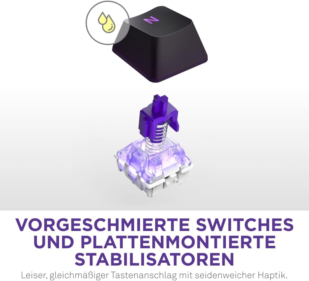 • КОМФОРТ ПО ЗВУК И УСЕЩАНЕ - Звукопоглъщащата пяна и подсилената с лента печатна платка създават дълбока, пълна акустика, докато конструкцията с уплътнение осигурява меко и омекотено изживяване при писане.