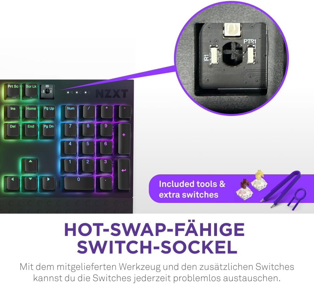 • NZXT -МАГНИТЕН ПРЕВКЛЮЧВАЧ – Сензори с ефект на Хол, мощни магнити и прецизно настроен фърмуер улавят точно всяко натискане на клавиш и отключват разширени възможности за персонализиране на начина, по който свирите и пишете.