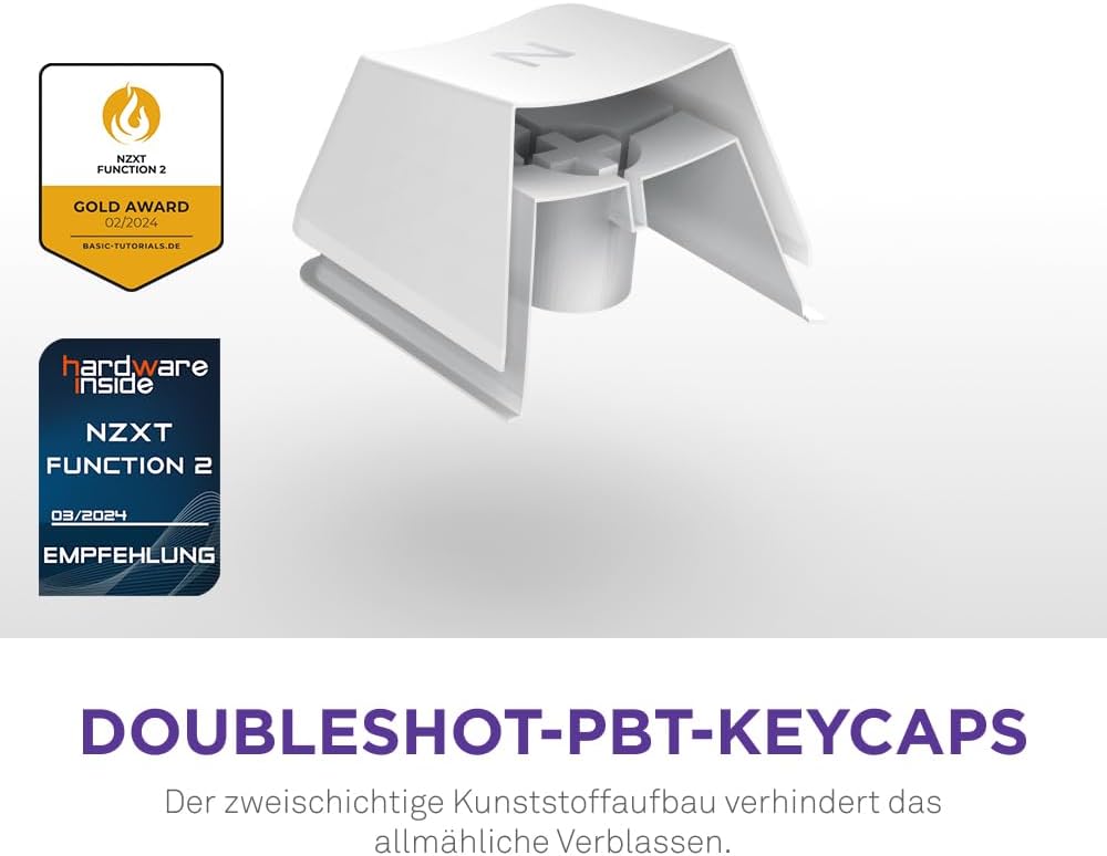 NZXT Function 2 MiniTKL - 2024 Оптична геймърска клавиатура без клавиши, RGB осветена, 8K скорост на заявки, линейни оптически превключватели, регулируем спусък, възможност за гореща смяна, бяла DE (QWERTZ)