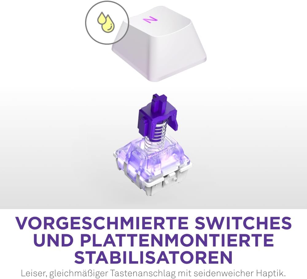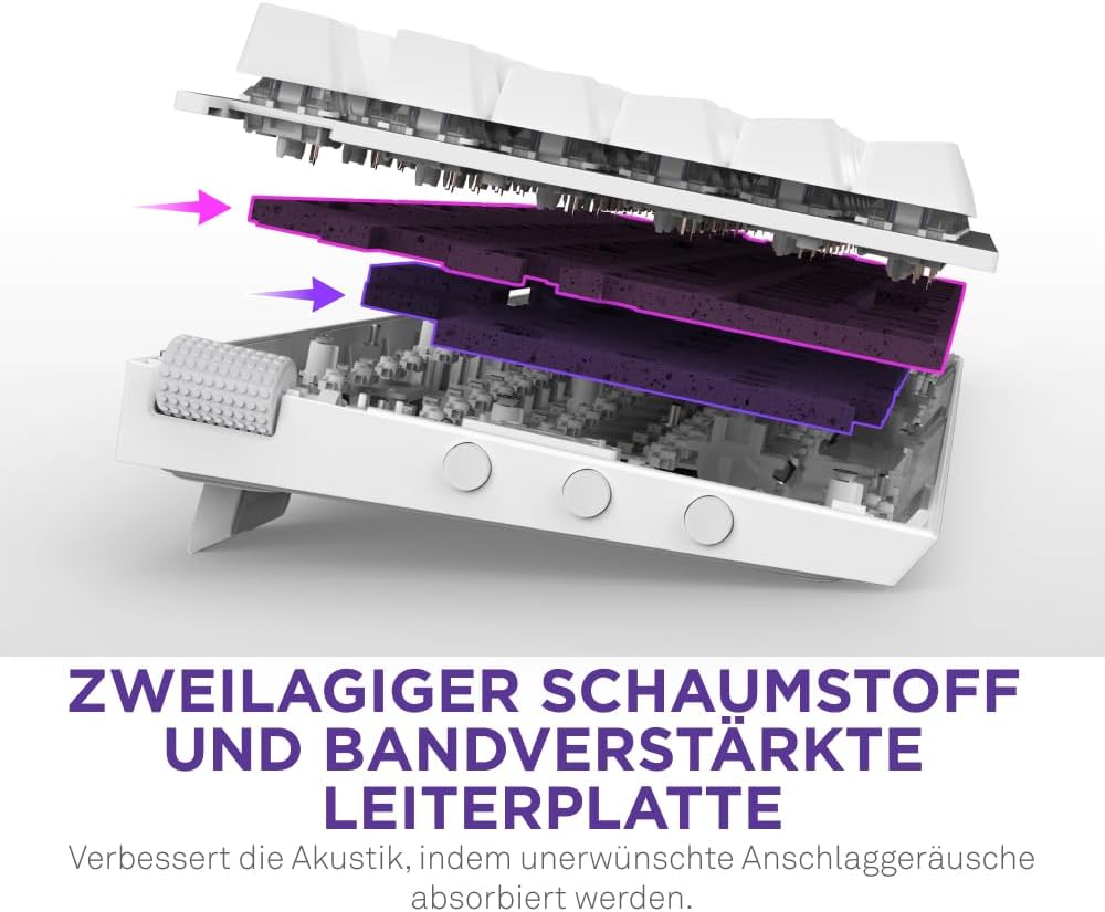 • КОМФОРТ ПО ЗВУК И УСЕЩАНЕ - Звукопоглъщащата пяна и подсилената с лента печатна платка създават дълбока, пълна акустика, докато конструкцията с уплътнение осигурява меко и омекотено изживяване при писане.