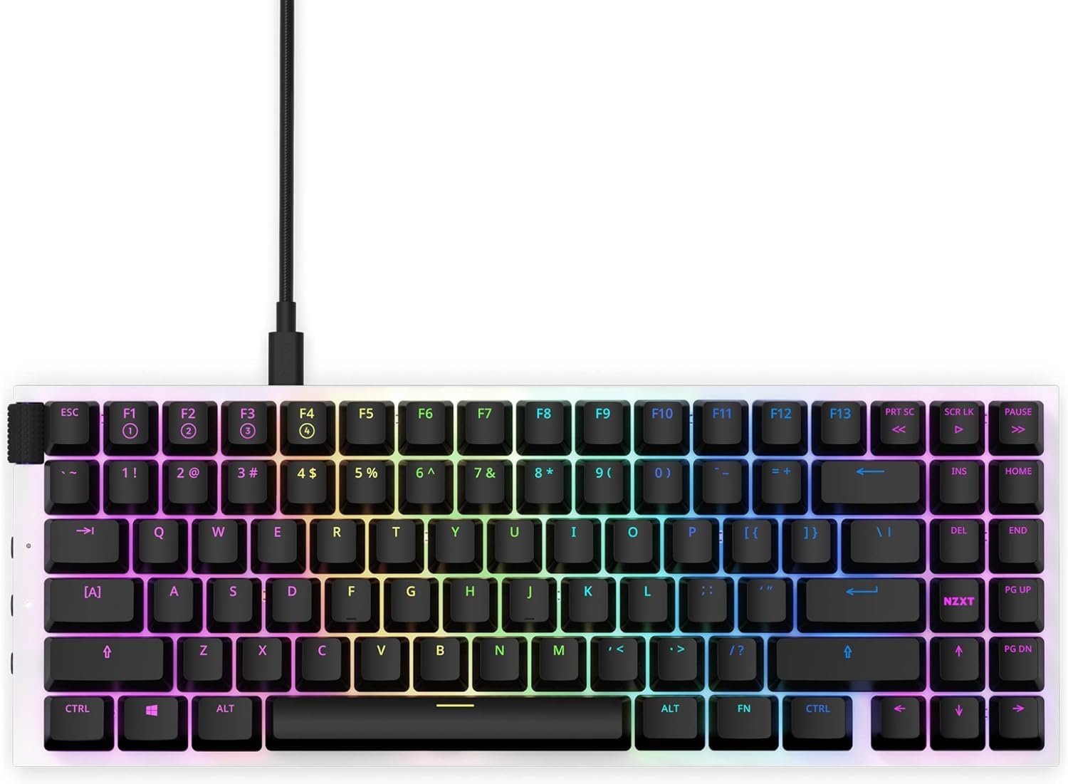 NZXT Function Mini TKL 2022 Механична геймърска клавиатура за компютър - Осветена - Линеен RGB превключвател - MX съвместими превключватели - Hot Swap - Алуминиев капак - Механична геймърска клавиатура | DE (QWERTZ) Бяла