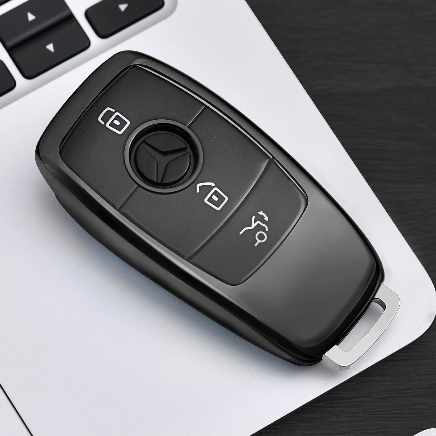 OATSBASF калъф за автомобилни ключове, подходящ за Mercedes Benz, защитен калъф за ключ за E-класа S-класа TPU (D-черен)