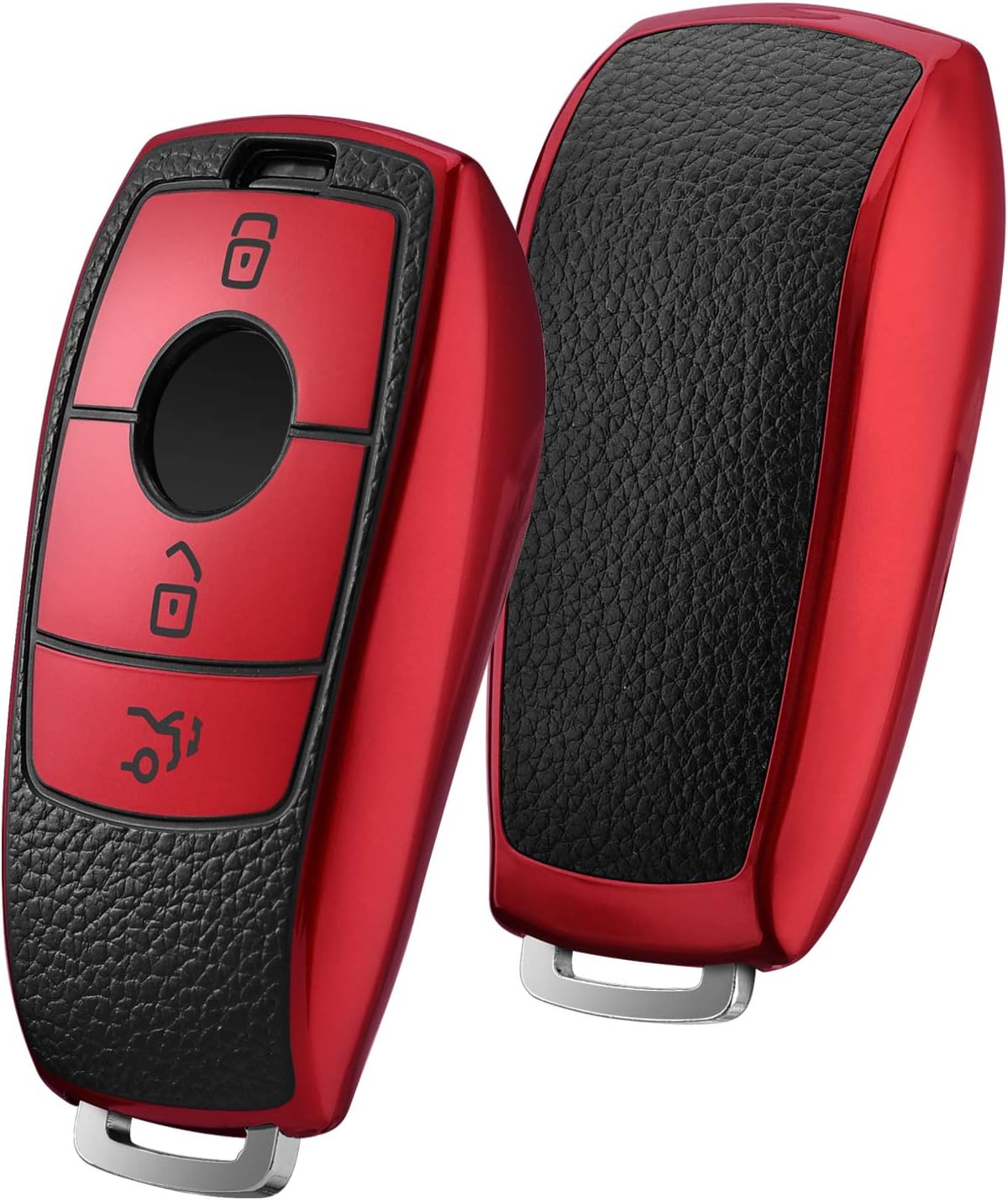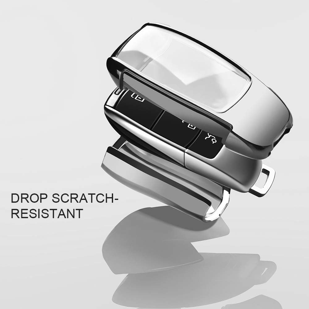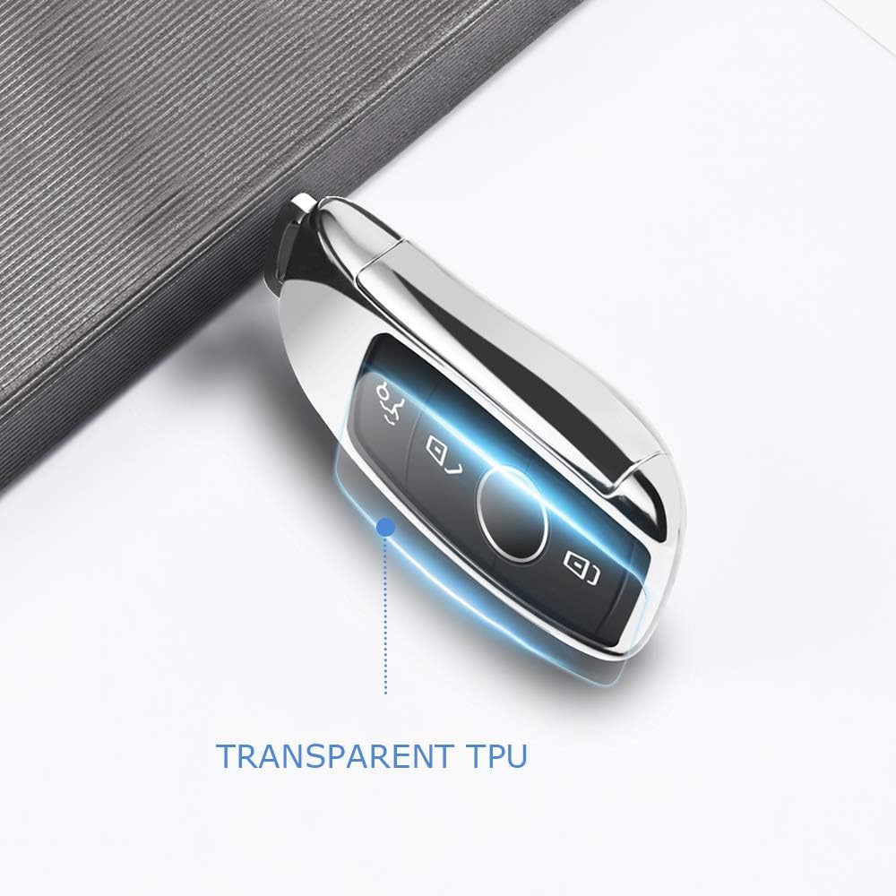 OATSBASF калъф за автомобилни ключове, подходящ за Mercedes Benz, защитен калъф за ключ за E-класа S-класа TPU (сребрист)